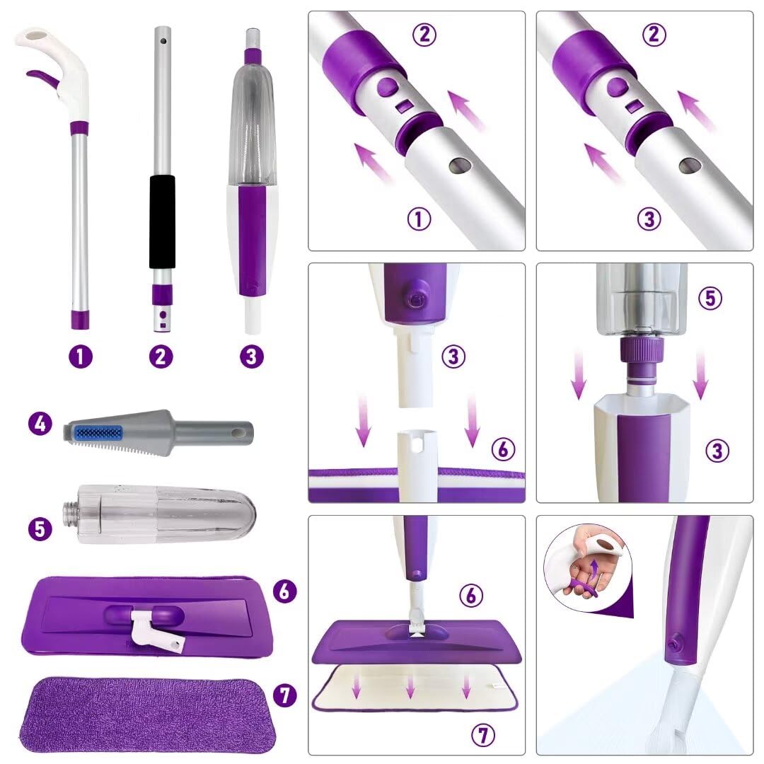 - ❤STURDY: Spray mop has a sturdy pole, with high quality design and structure. Mophead is made of impact-resistant plastic. Highly quality aluminum alloy pole for long-term use.