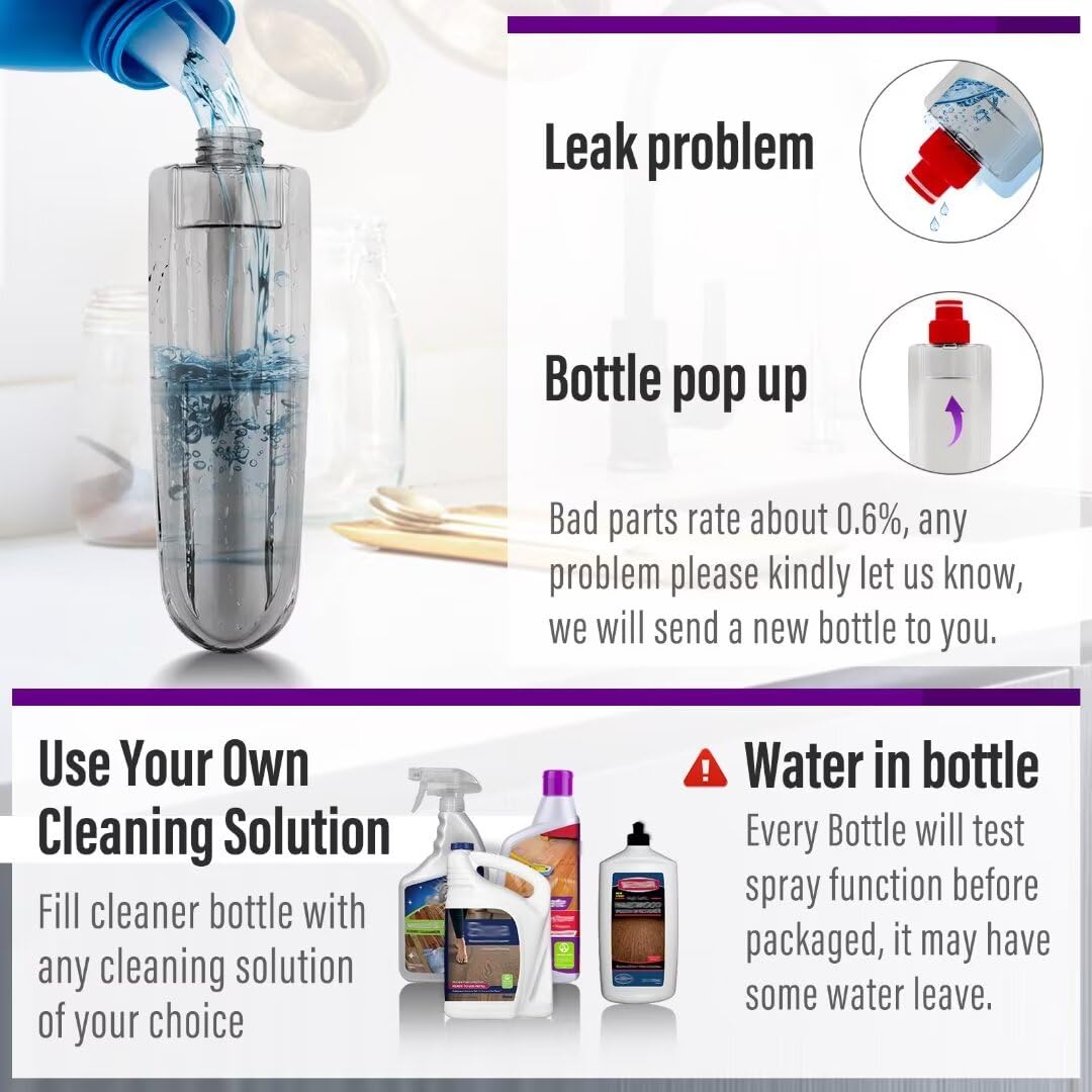 - ❤WARRANTY AND PACKAGE: 1 mop,1 refillable bottle(14 oz), 2 microfiber mop pads, and 1 scraper for heavy-duty scrubbing. If you have any questions, please contact us.