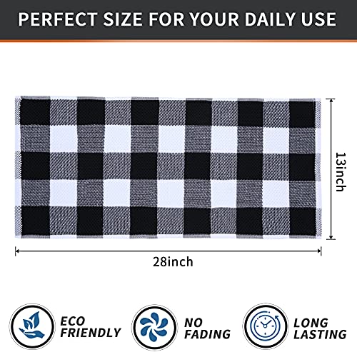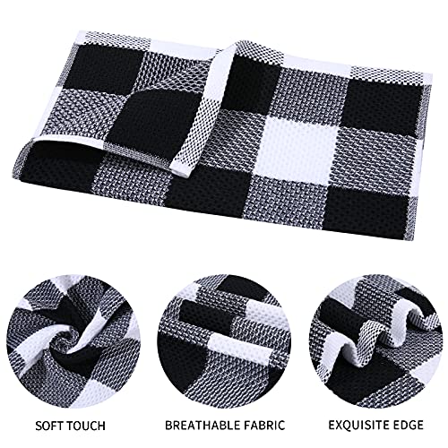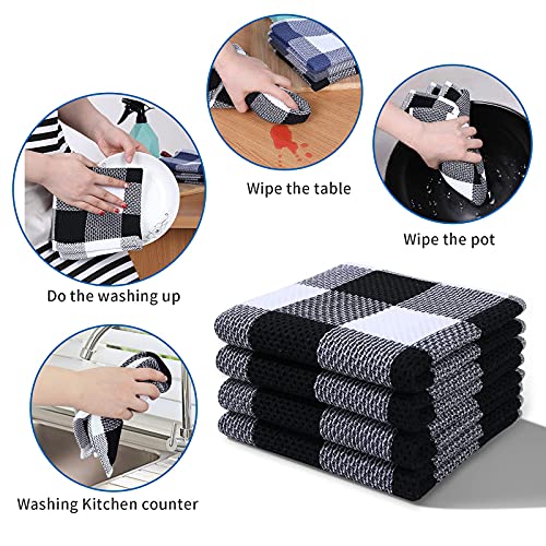 Mordimy 100% Cotton Waffle Weave Kitchen Towels, 13 x 28 Inches, Super Soft and Absorbent Buffalo Check Dish Towels for Drying Dishes, 4-Pack, Black & White