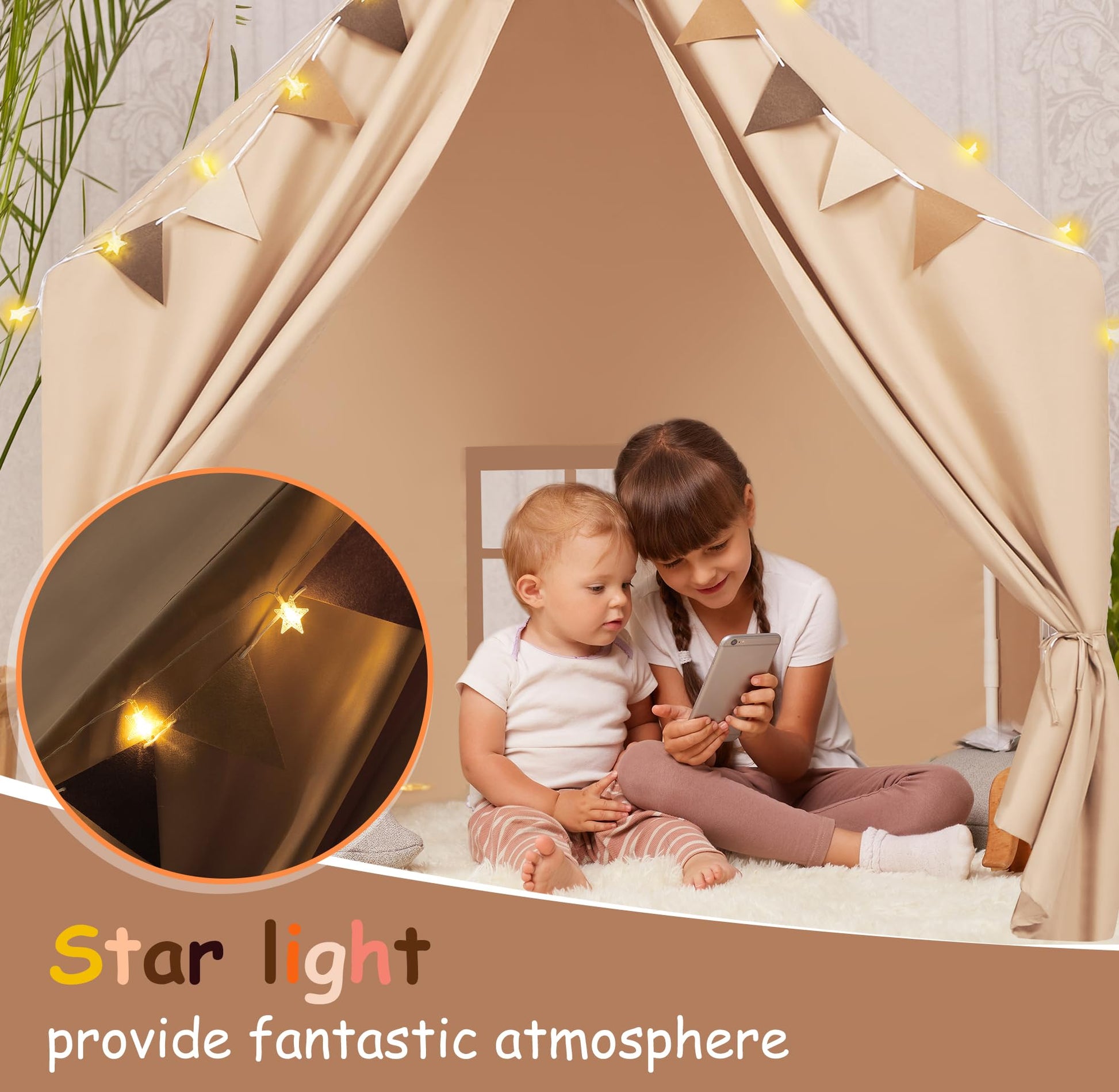 - HUMANIZED DETAIL DESIGN - The breathable windows and the curtain make it feel like a little home while the sparkling LED star lights creating a dreamy space at night; neutral and elegant colors and textured fabrics add to the high-end aesthetic of this tent