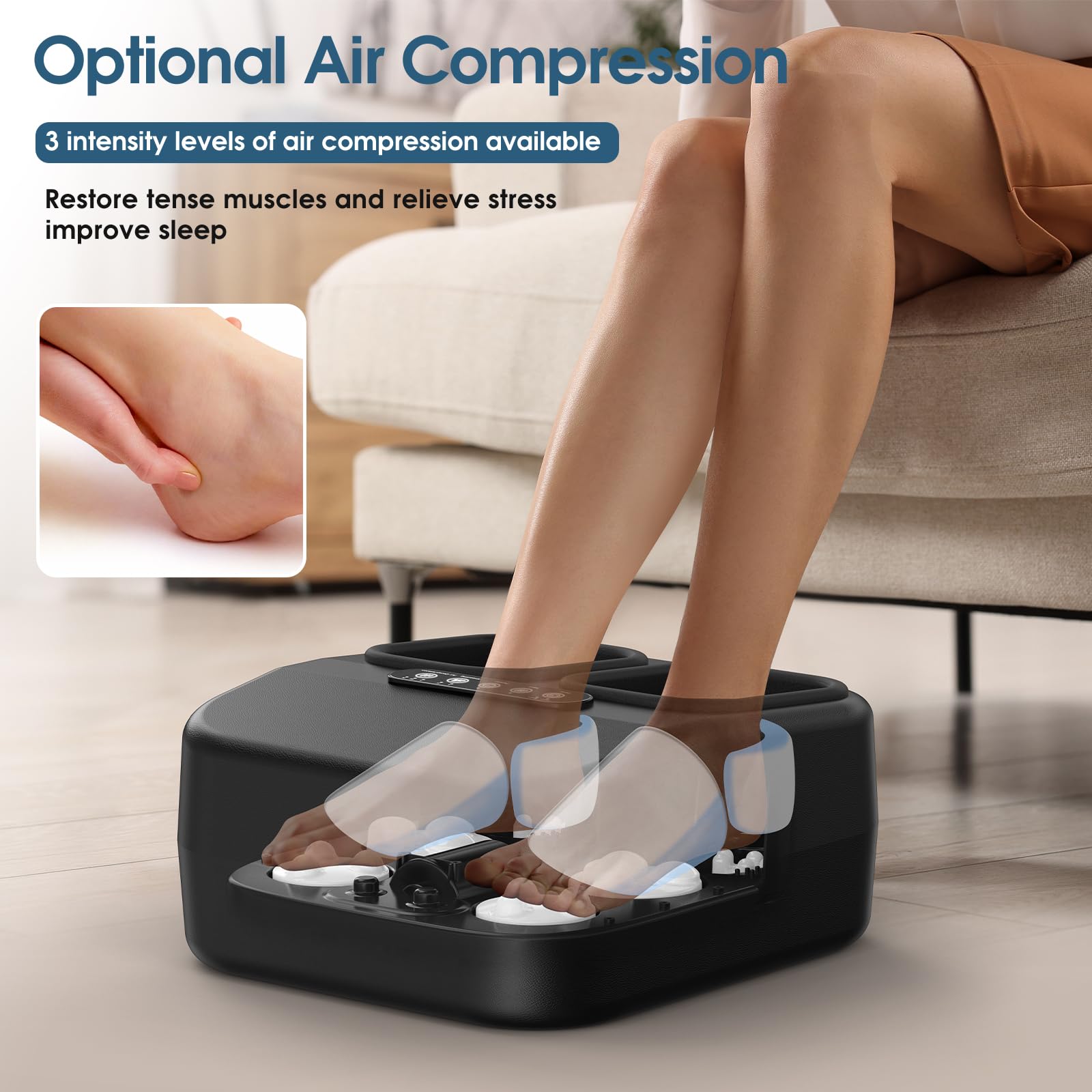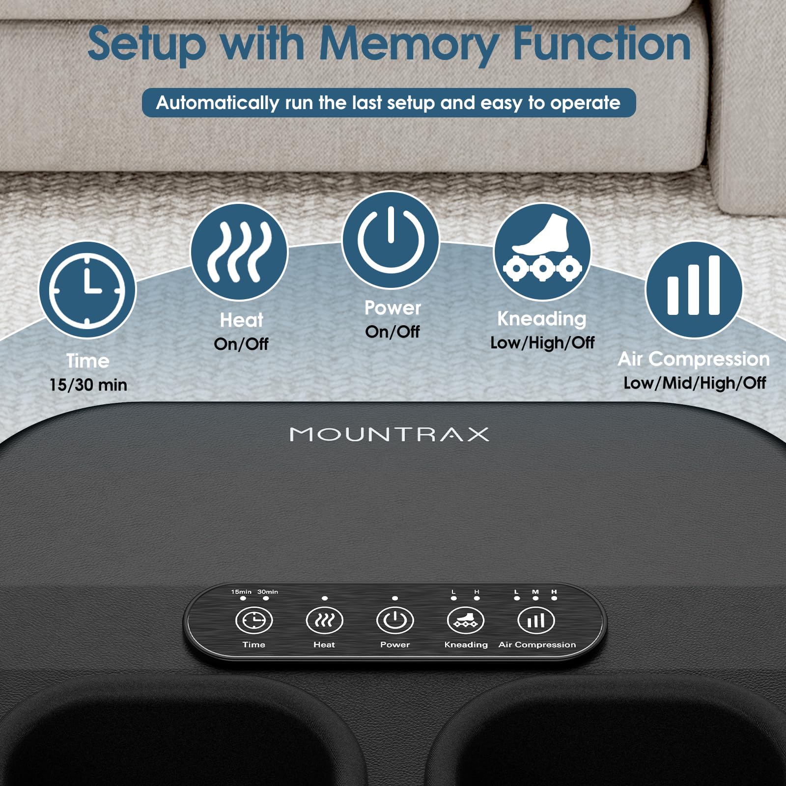 - Your Personal Foot Masseur - Mountrax new foot massager optional two level massage intensity and three level full-coverage compression for your foot. It is equipped with three massage nodes that providing deep kneading foot massage for the front, middle and back of the foot, which can relieve foot pain and fatigue after a busy day.