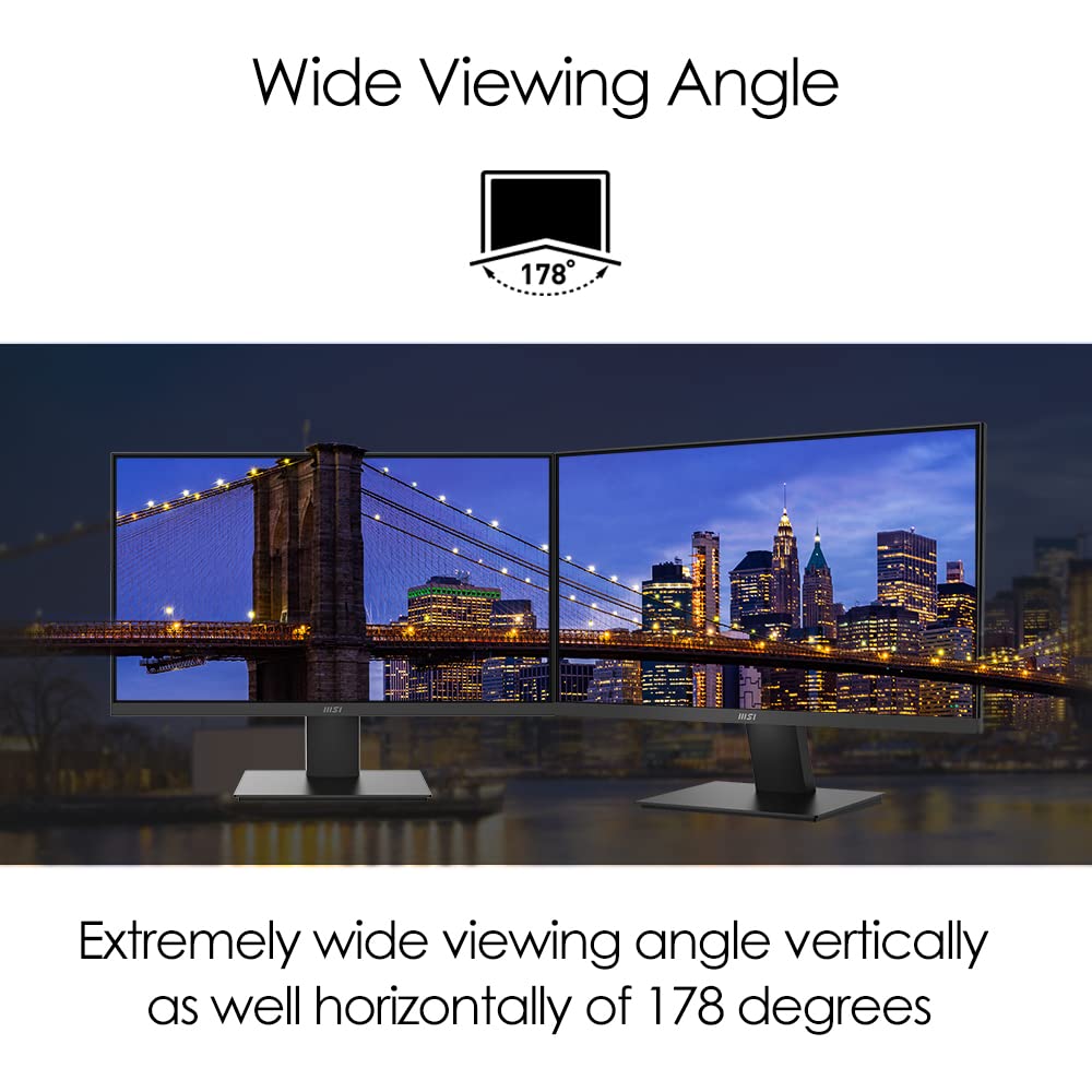 MSI Pro MP241X 24” Monitor, Full HD 1080p, 75Hz Refresh Rate, Anti-Glare Display, Less Blue Light, VESA Mountable, HDMI and VGA, Black