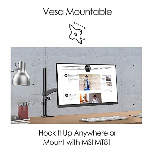 MSI Pro MP241X 24” Monitor, Full HD 1080p, 75Hz Refresh Rate, Anti-Glare Display, Less Blue Light, VESA Mountable, HDMI and VGA, Black
