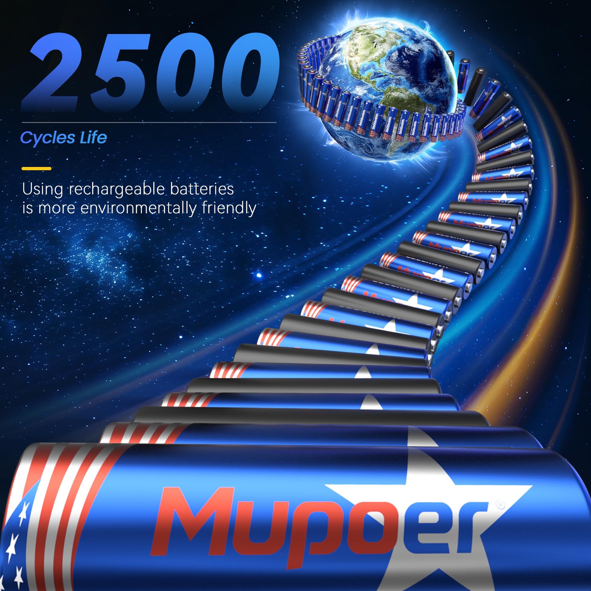- 2500 Cycle Life 0V Activation:Rechargeable aa batteries can be charged up to 2500 times, with no memory effect and low discharge rate, saving you a lot of money. Even if the battery is out of power and the voltage is 0V, the charger can directly activate the refresh battery for charging