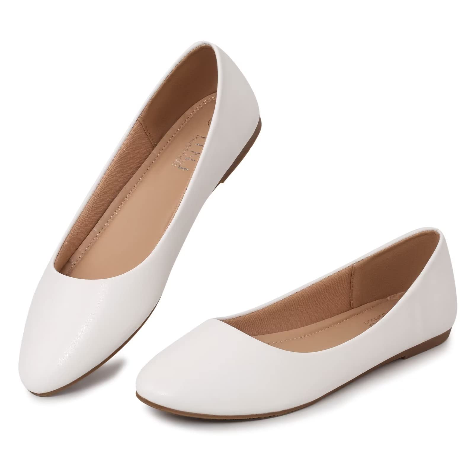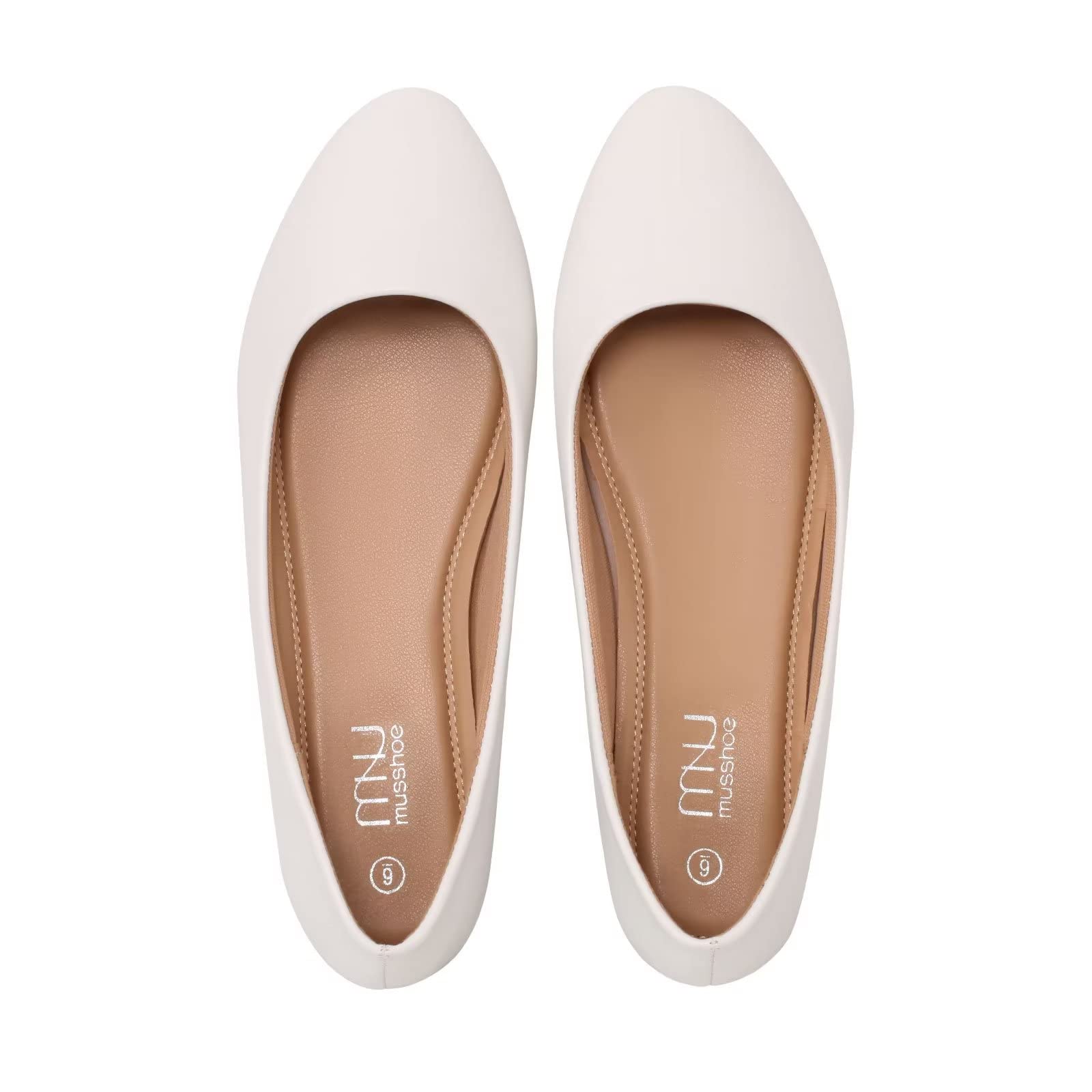 MUSSHOE Flats Shoes Women Pointed Toe Basic Womens Flats,White PU 10