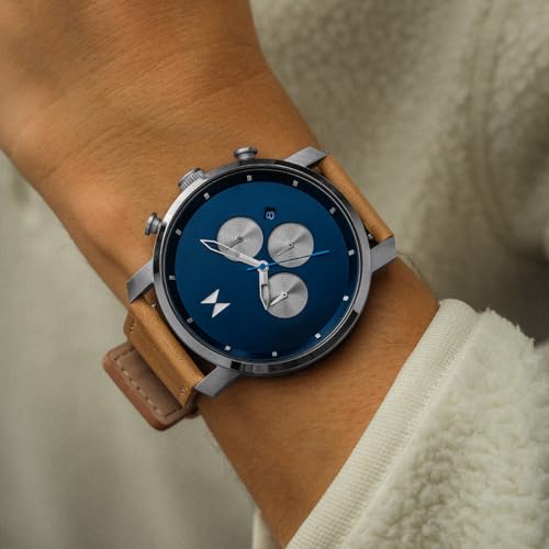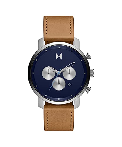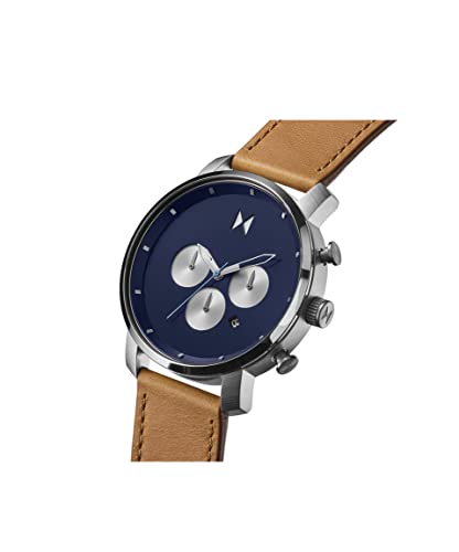 MVMT Chrono Men's Manta Blue Stainless Steel Case Watch with Brown Leather Strap, 45MM (Model: 28000288)