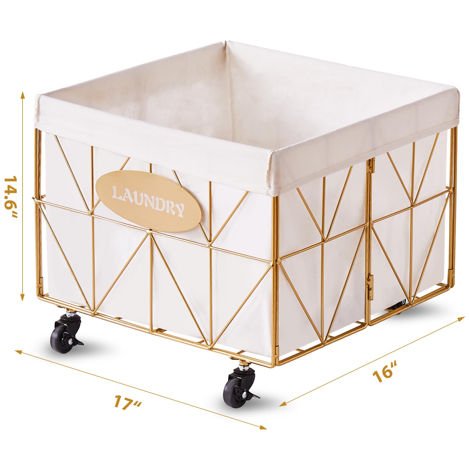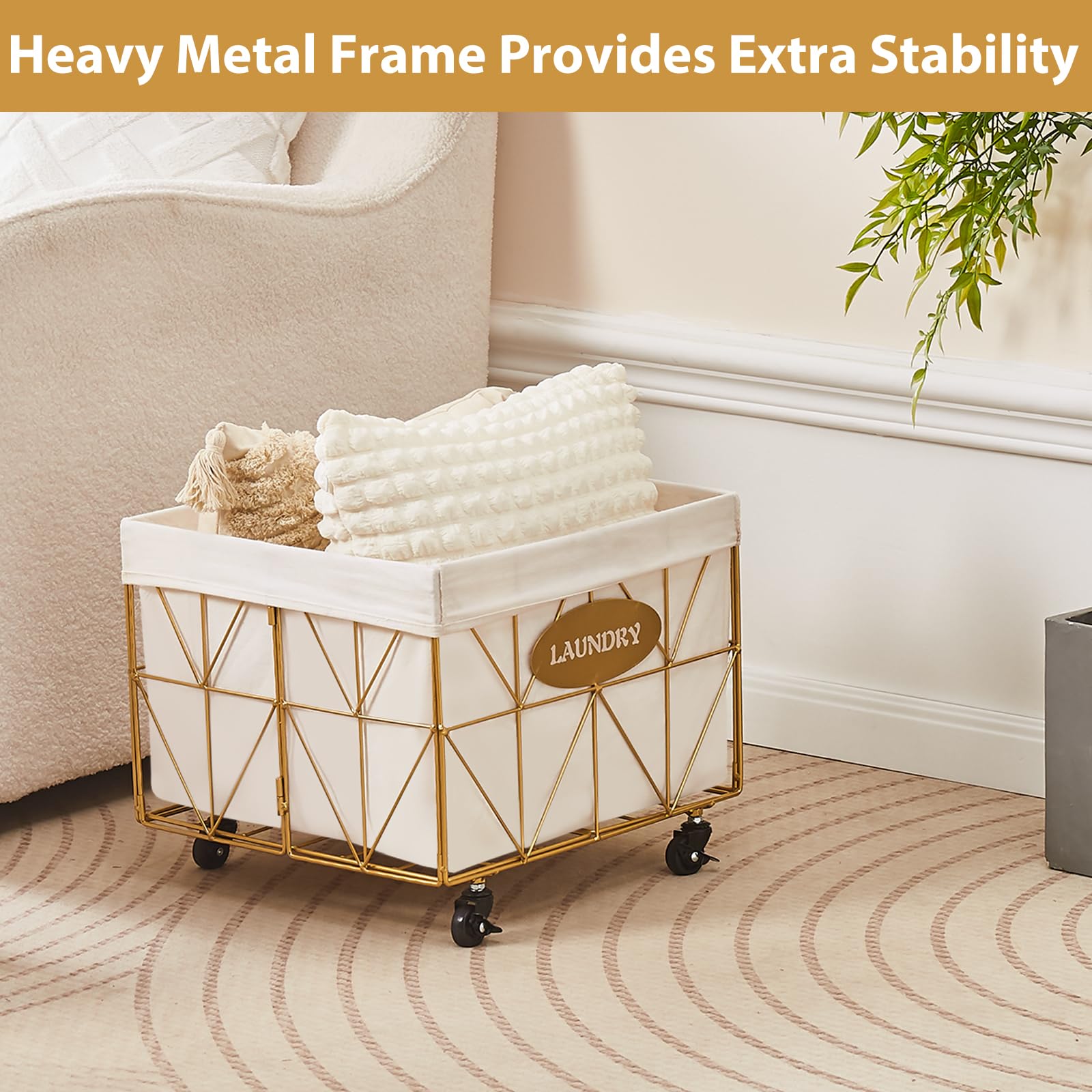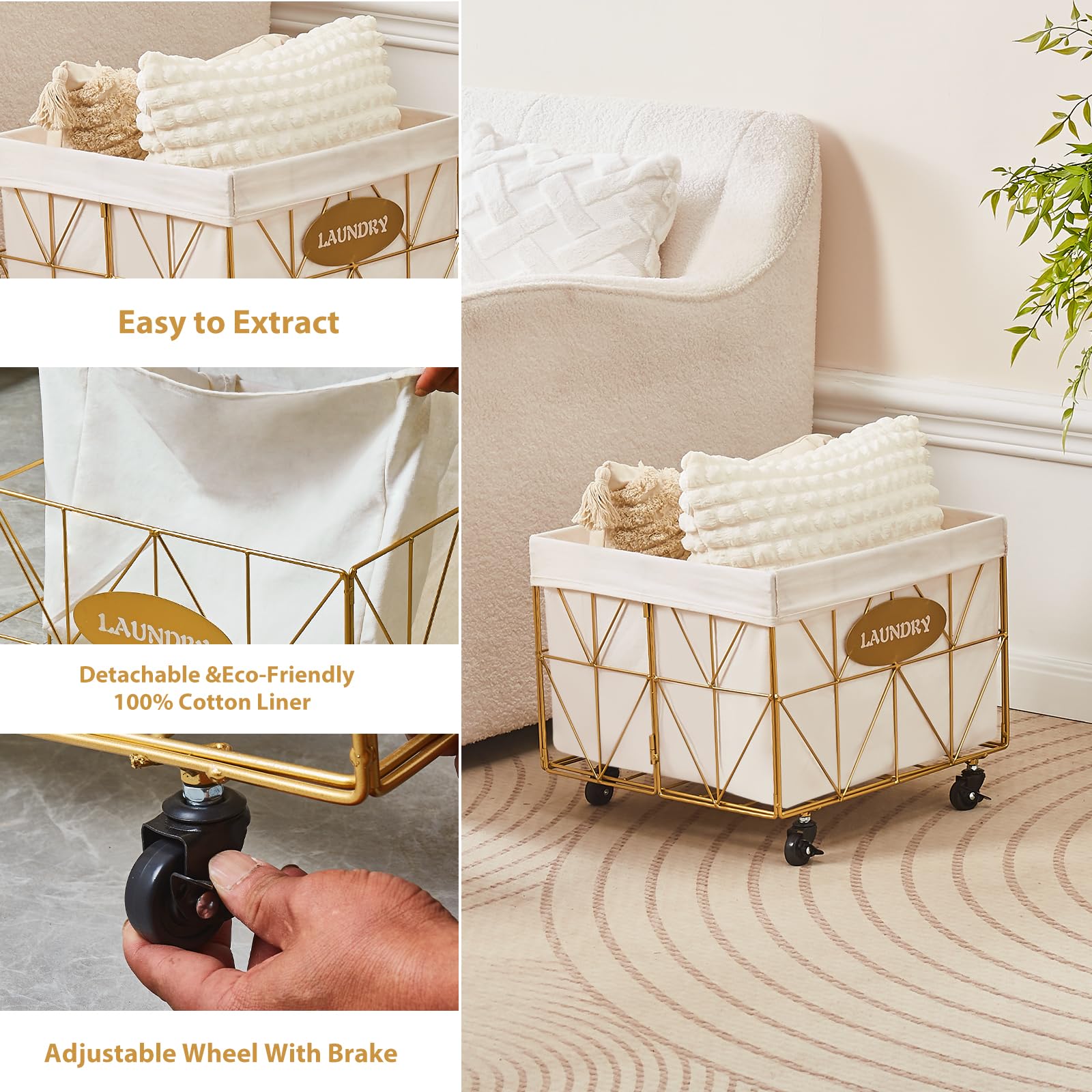 Mxfurhawa Collapsible Laundry Hamper with Wheels, 65L Capacity and Removable Liner, Sturdy Metal Frame for Clothes Storage and Transport - Convenient Laundry Basket for Home Use (Gold)