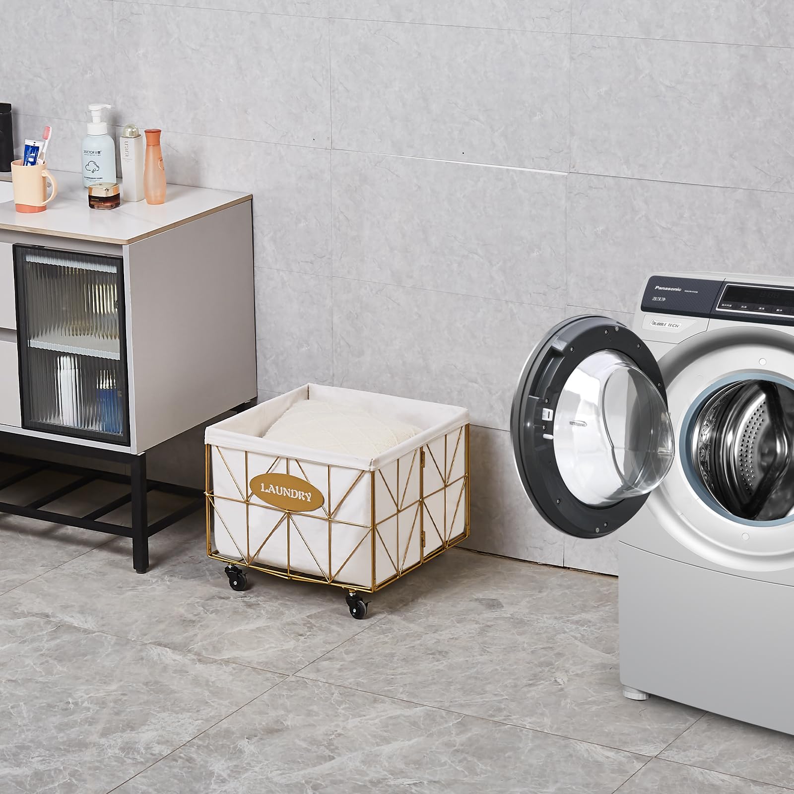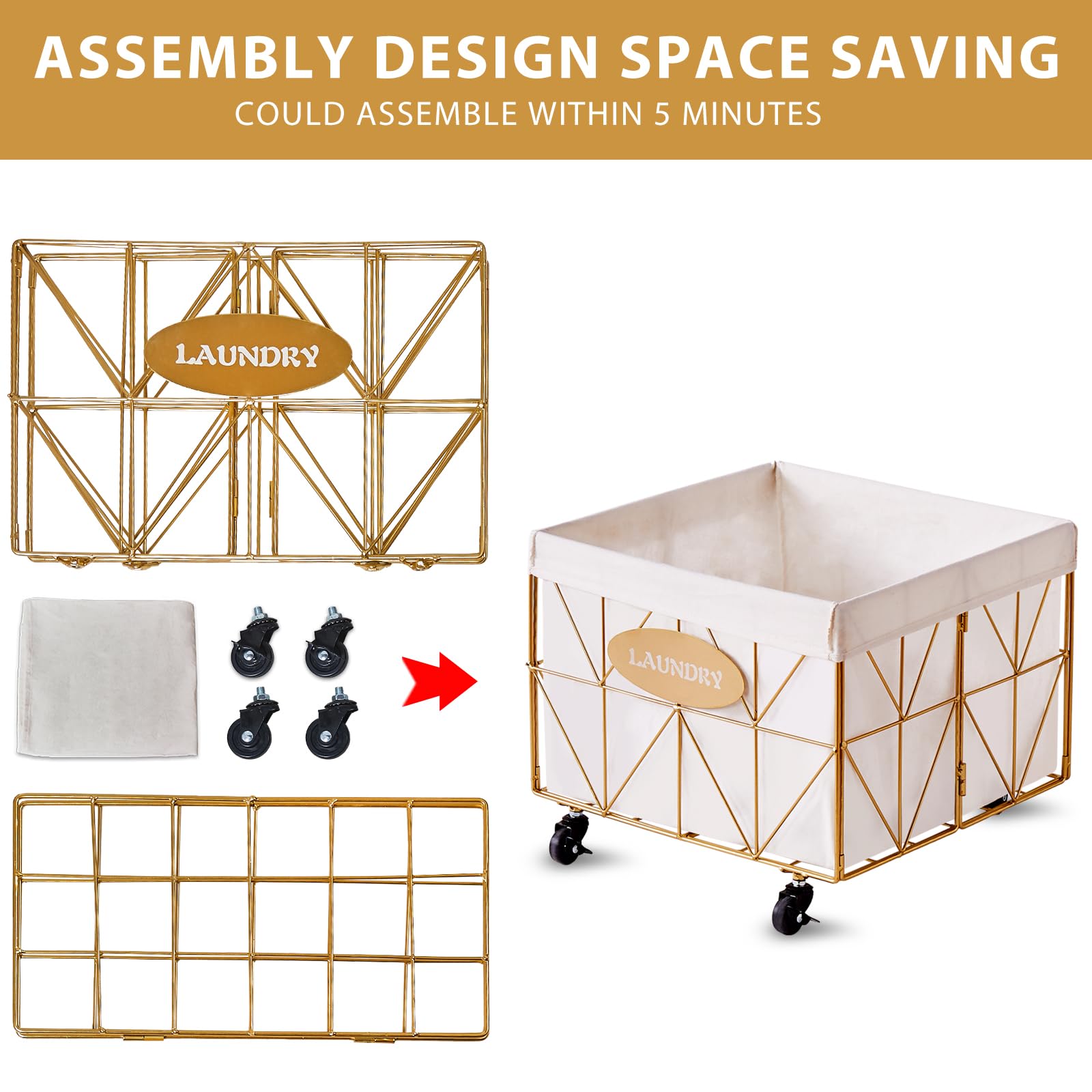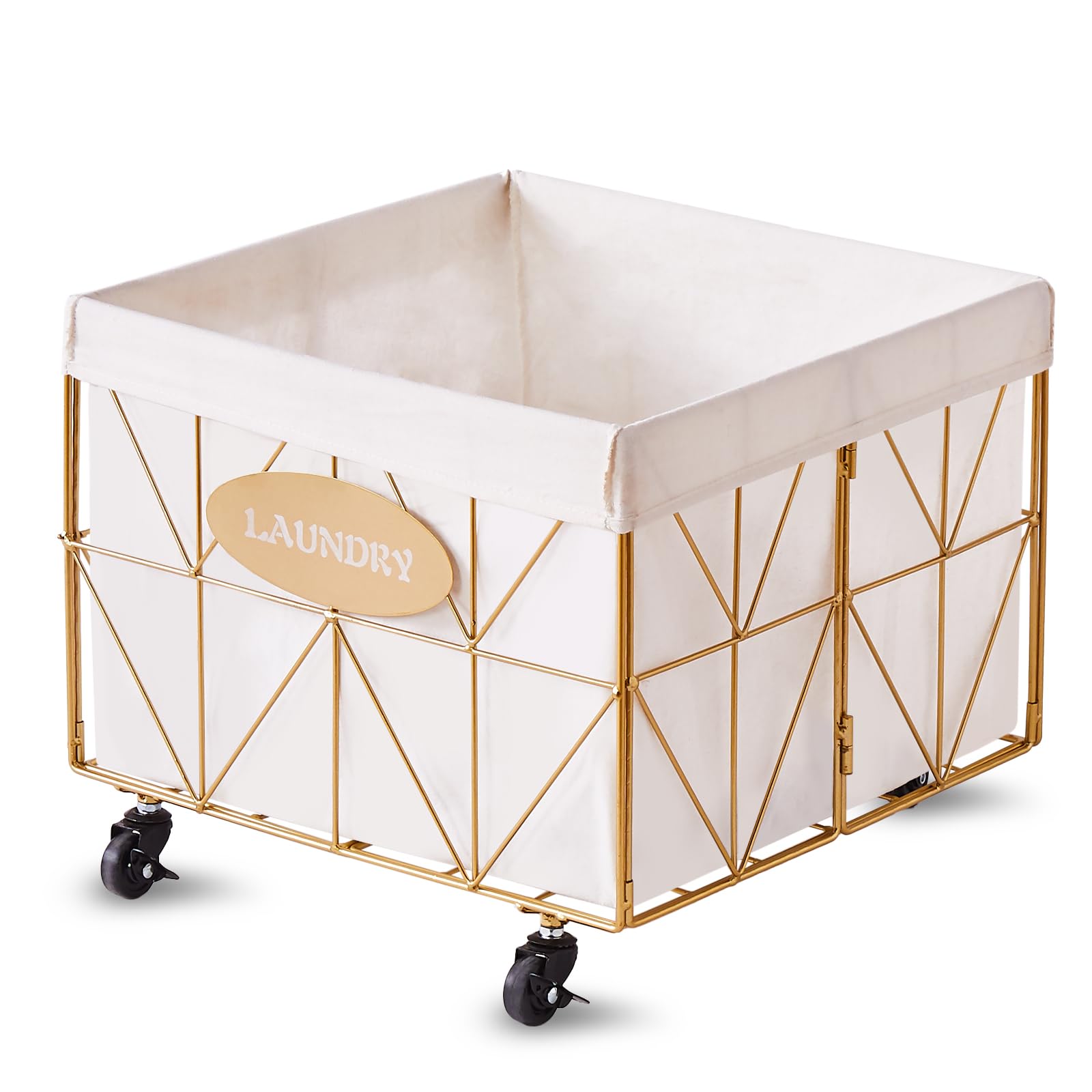 Mxfurhawa Collapsible Laundry Hamper with Wheels, 65L Capacity and Removable Liner, Sturdy Metal Frame for Clothes Storage and Transport - Convenient Laundry Basket for Home Use (Gold)