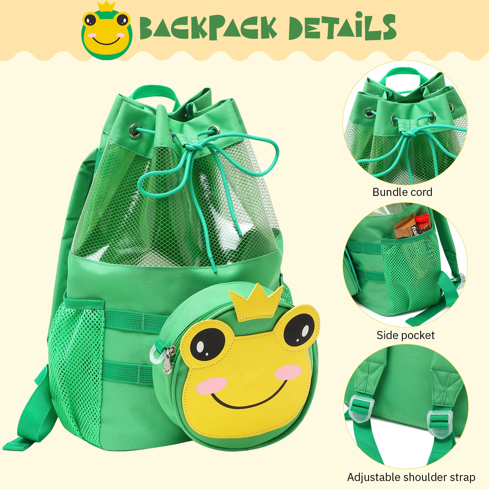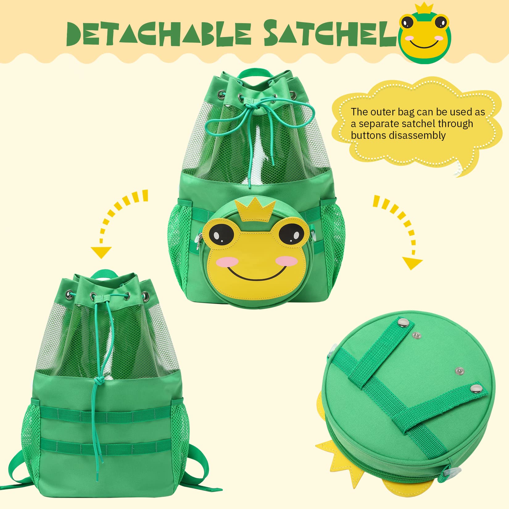 mygreen Multifunctional 2 in 1 Children Boy Girl Frog Print Drawstring Backpack Outdoor Casaul Portable Detachable Crossbody Shoulder Bag Swim Gymsack Sack Pack Green