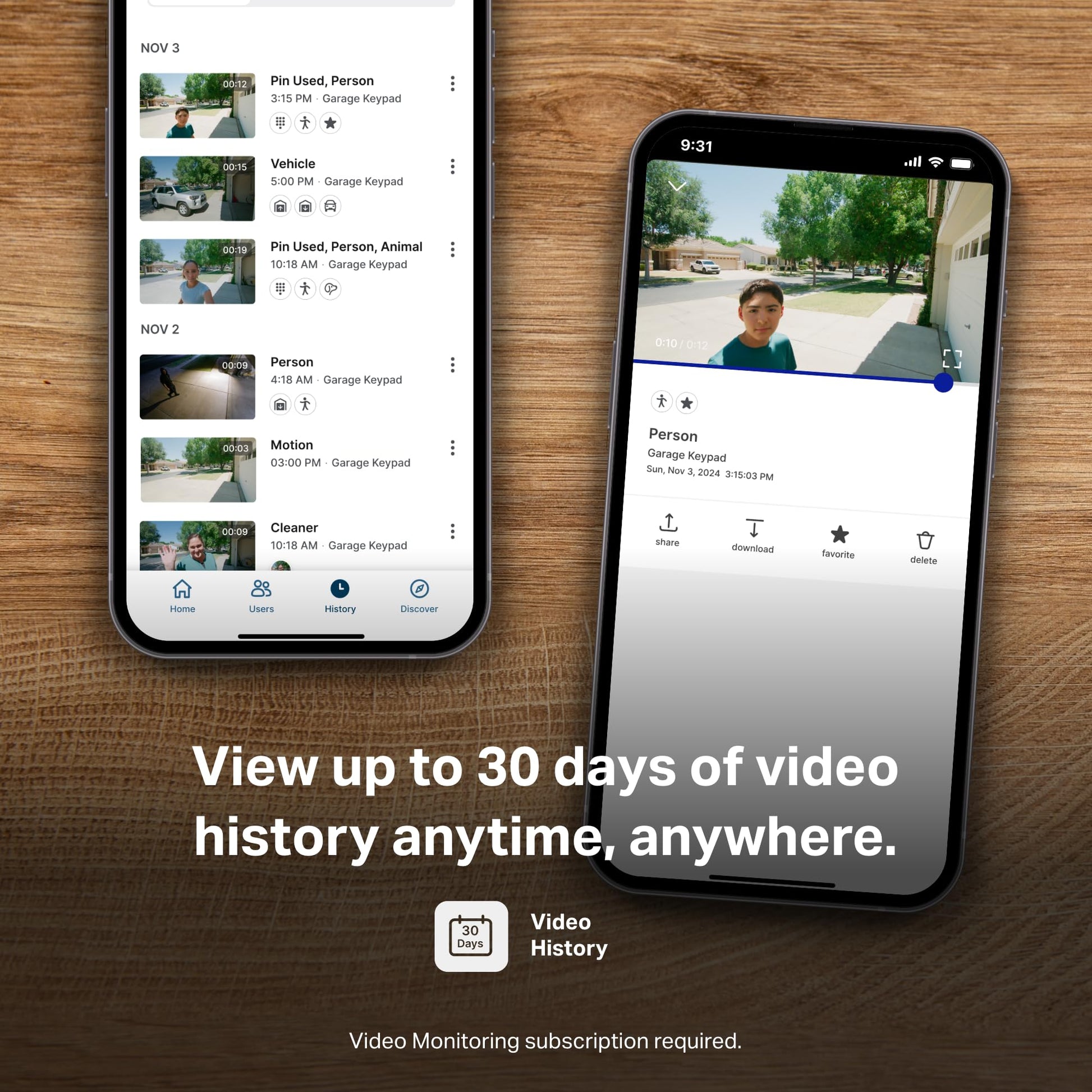 Details: The myQ Smart Garage® Video Keypad lets you see and control who opens your garage door. Grant access by assigning unique PIN codes for family, guests, or service providers. Get meaningful insights with real-time alerts that will tell you when someone has accessed your garage. Easy installation with integrated Bluetooth technology makes for quick Wi-Fi pairing. A must have for any smart home.
