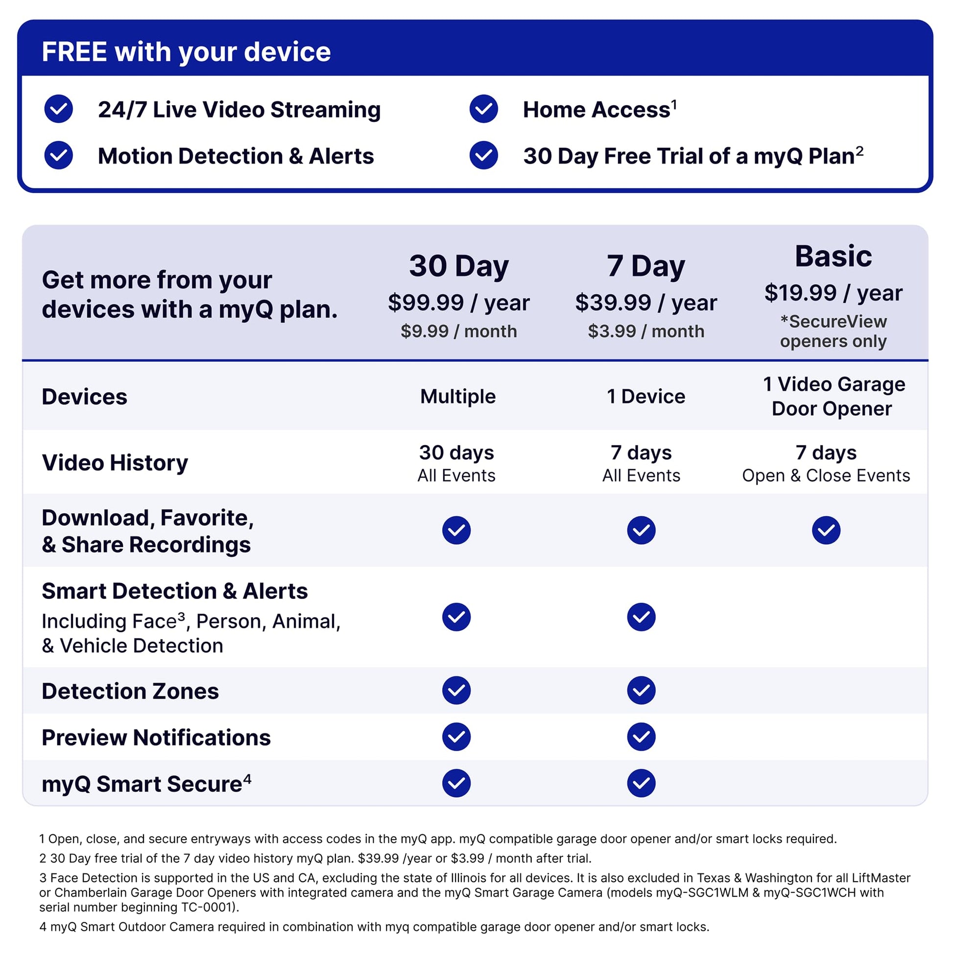 - Remote Viewing: Access live feeds directly through the myQ app and take advantage of a free trial to view recorded events.