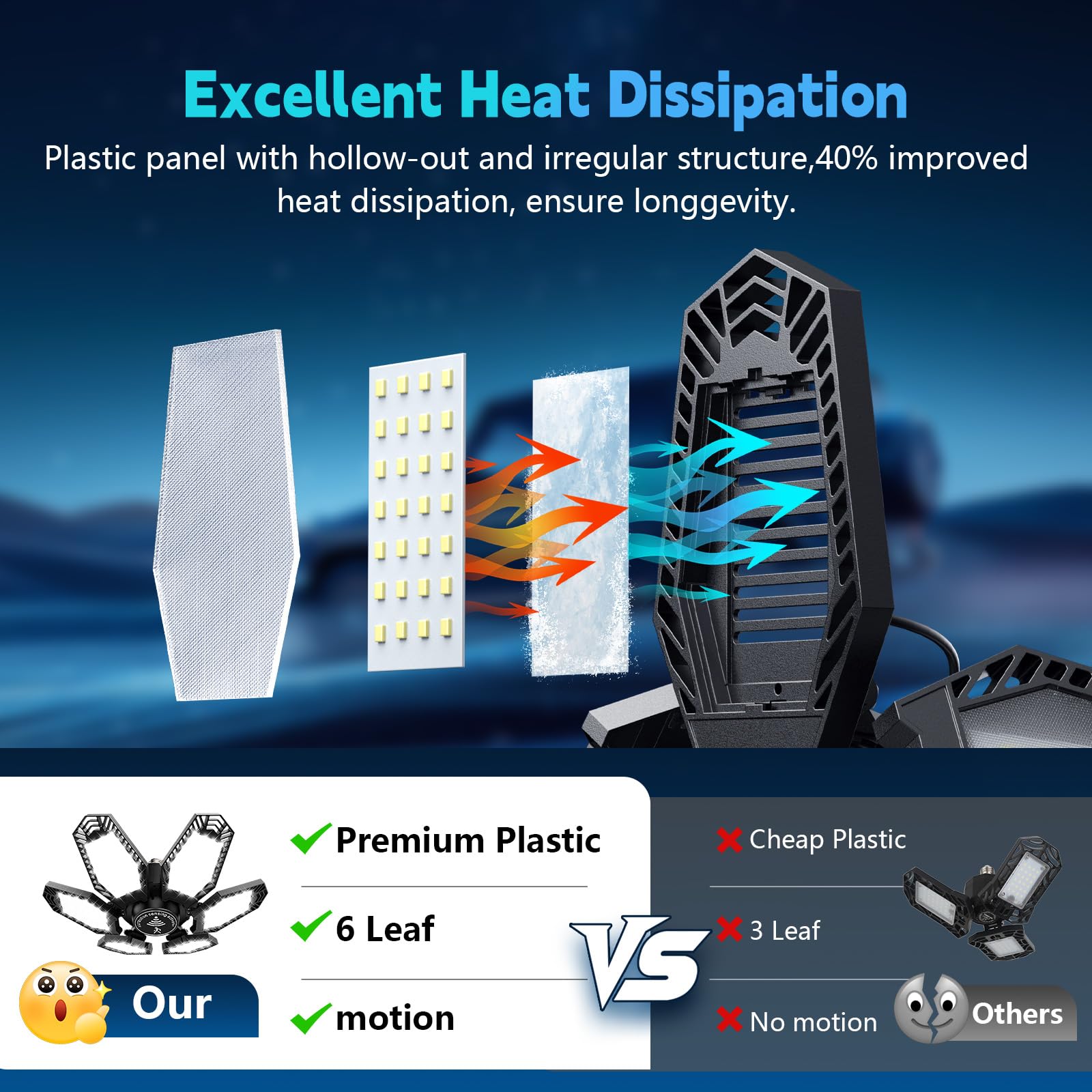- 【Fully Adjustable Ultra-Bright Design】6 customizable panels per light (90° adjustable each) enable precise 360° coverage. Each unit outputs 15,000 lumens at 150W – equivalent to two 300W incandescent bulbs – while saving 80% energy.