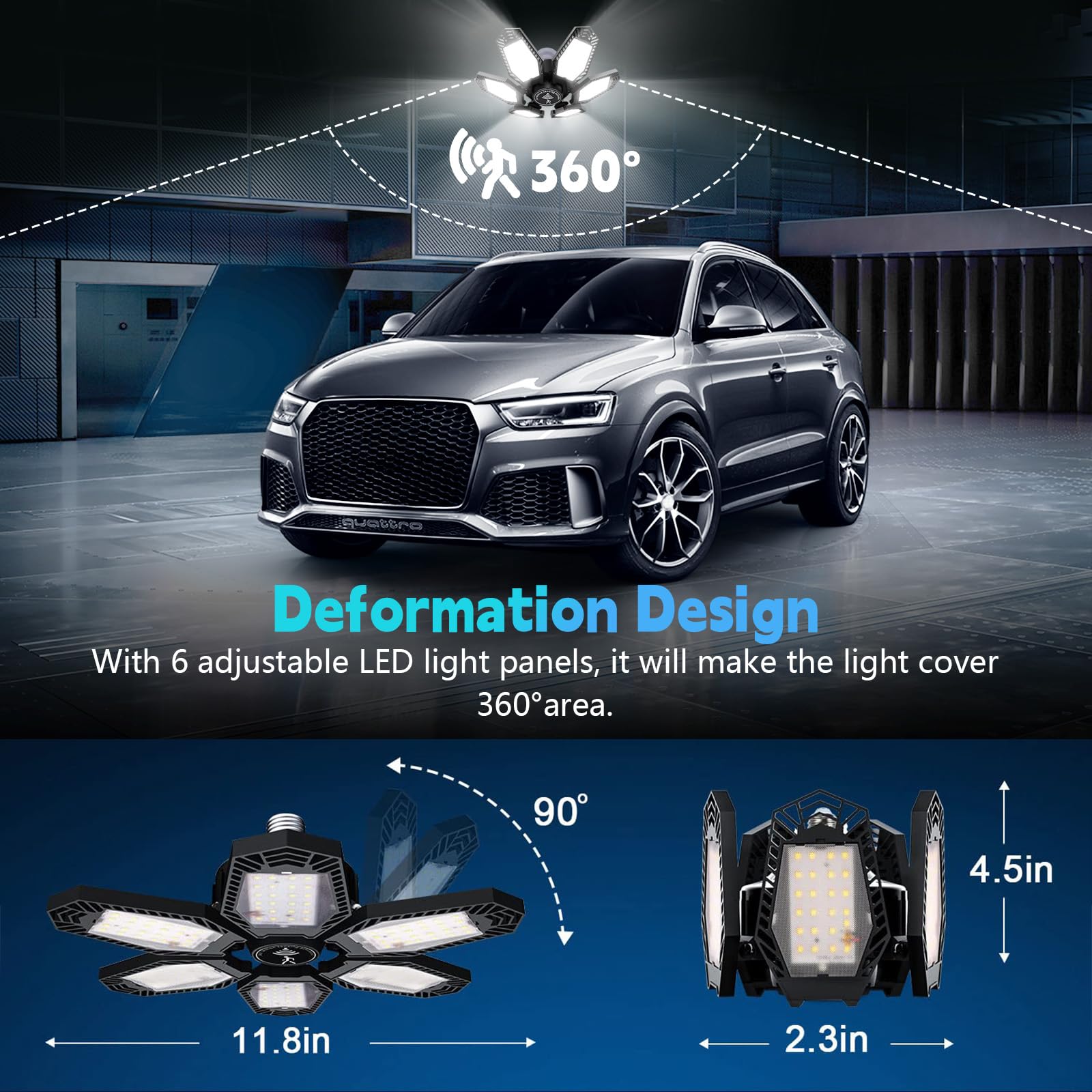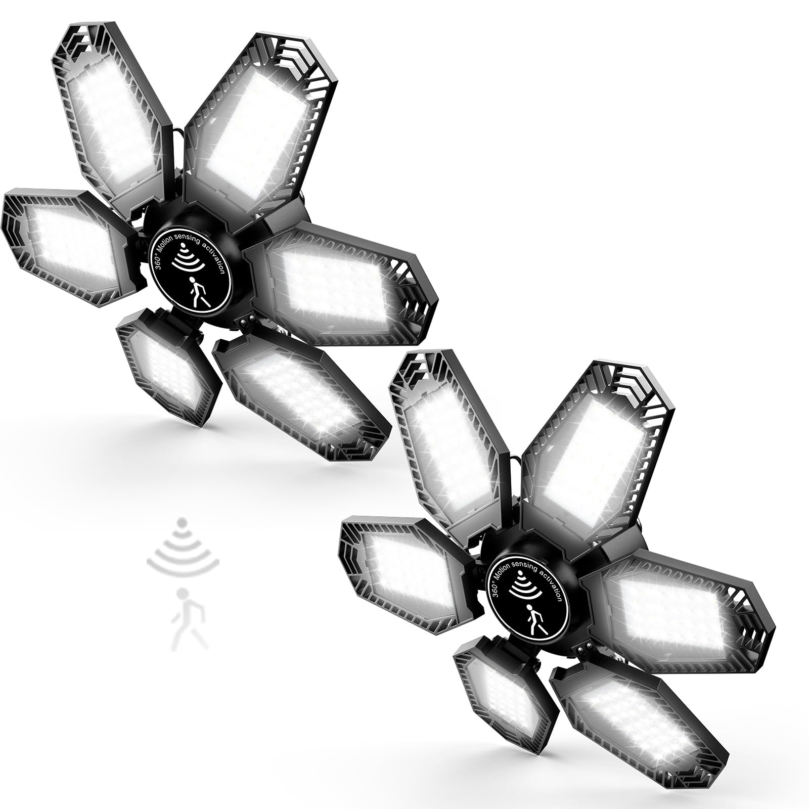 Myteaworld 2 Pack Motion Sensor Garage Light, 15000LM Ultra LED Shop Light Motion Activated, 6500K Daylight, 150W Deformable Garage Lighting for Attic, Workshop, Laundry Room, Basement(E26/E27 Screw)