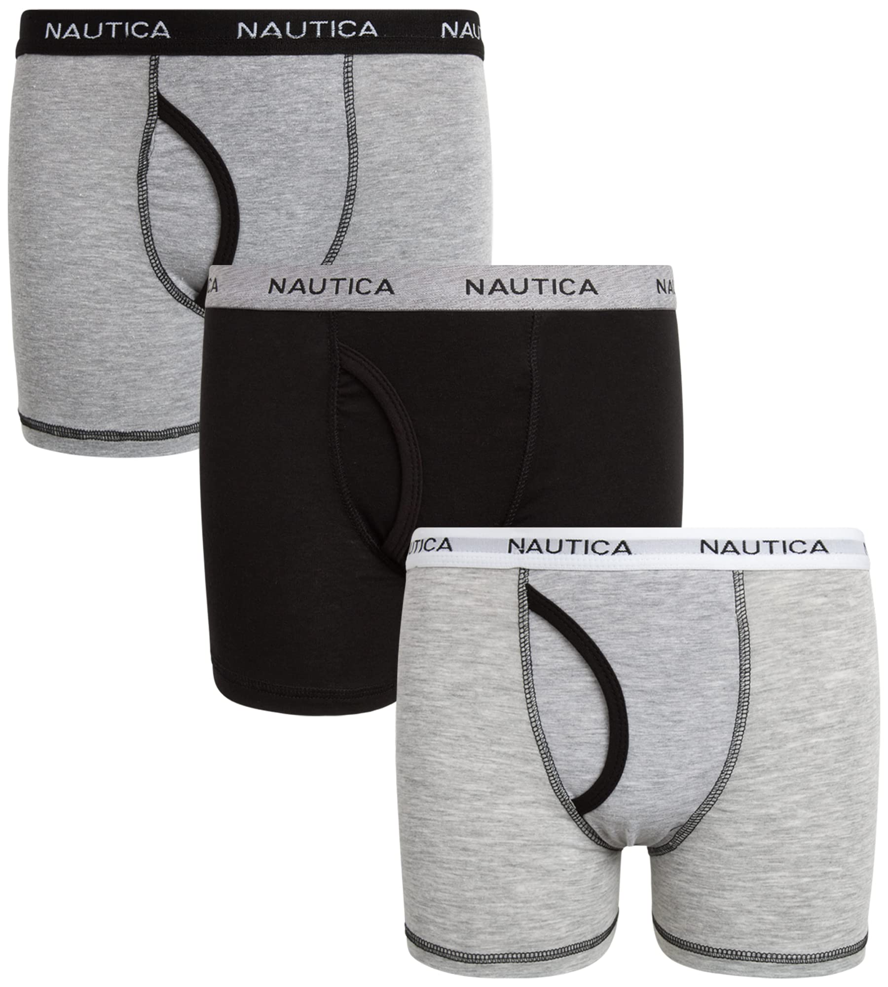 - CLASSIC BOXER BRIEFS: With a functional fly and contour pouch, this 3 pack and 6 pack bundle of basic underwear for little and big boys is a wardrobe essential for your son; Let him start the day the right way with a pair of comfortable Nautica boxer briefs that won't irritate or slide up