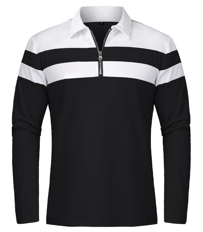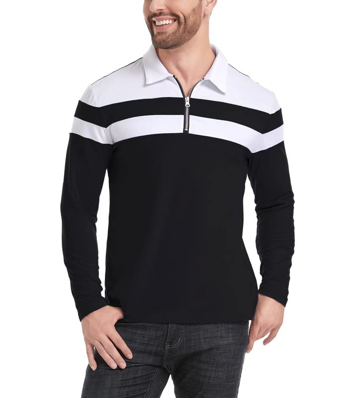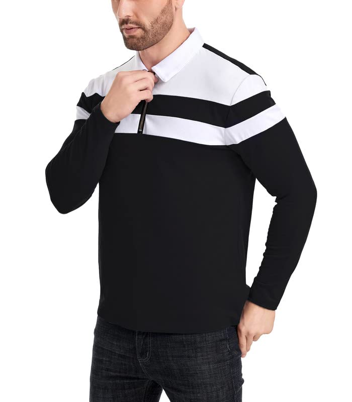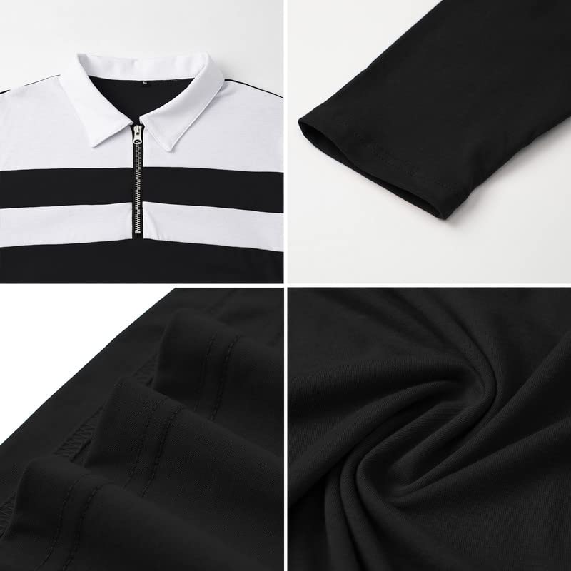 Details: NAVEKULL Men's Long Short Sleeve Polo Shirts Quarter Zip Pullover Striped 1/4 Zip Collared Shirt Casual Slim Fit Golf Rugby Shirt Contrast Color Patchwork T Shirt Spring Fall Cotton Stretch Tops