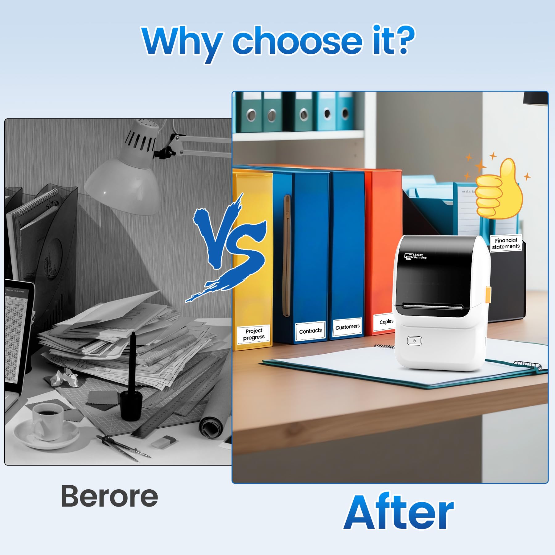 - Ink-Free & Cost-Effective Printing: Leveraging direct thermal technology, our label makers deliver HD-quality prints without the need for ink or toner. Plus, you can opt for cost-effective thermal paper of suitable sizes, eliminating the need for expensive proprietary label paper. With a printable label width ranging from 20mm to 48mm (out of a 50mm paper width).