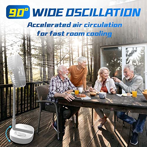 Nenkoo Battery Operated Fan, 8" Portable Oscillating Travel Fan 12500mAh with 4 Speed Timing Remote Control, White Desk Fan, Table Fan Adjustable Height 14.6"-40.2", Retractable Fan Travel Cruise