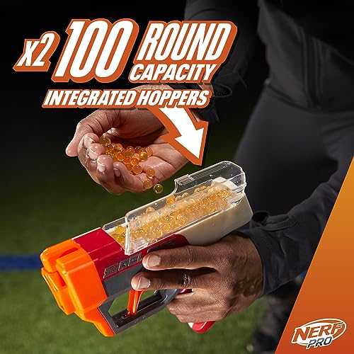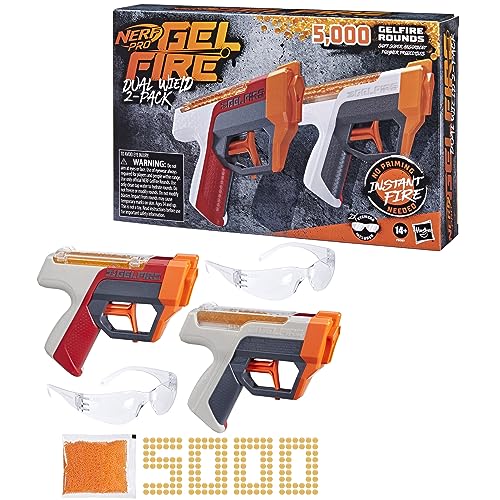 Nerf Pro Gelfire Dual Wield Pack, 2 Blasters, No-Prime Firing, 5000 Gelfire Rounds, 2X 100 Round Integrated Hoppers, 2 Eyewear, Ages 14 & Up