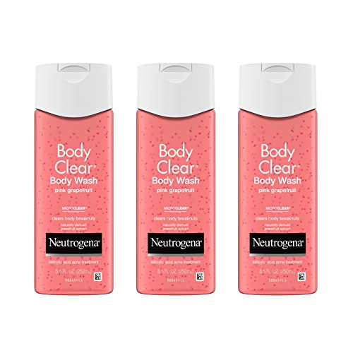- Three 8.5-fluid ounce bottles of Neutrogena Body Clear Pink Grapefruit Acne Body Wash with salicylic acid acne medication specially designed for acne-prone skin to help treat and prevent acne breakouts
