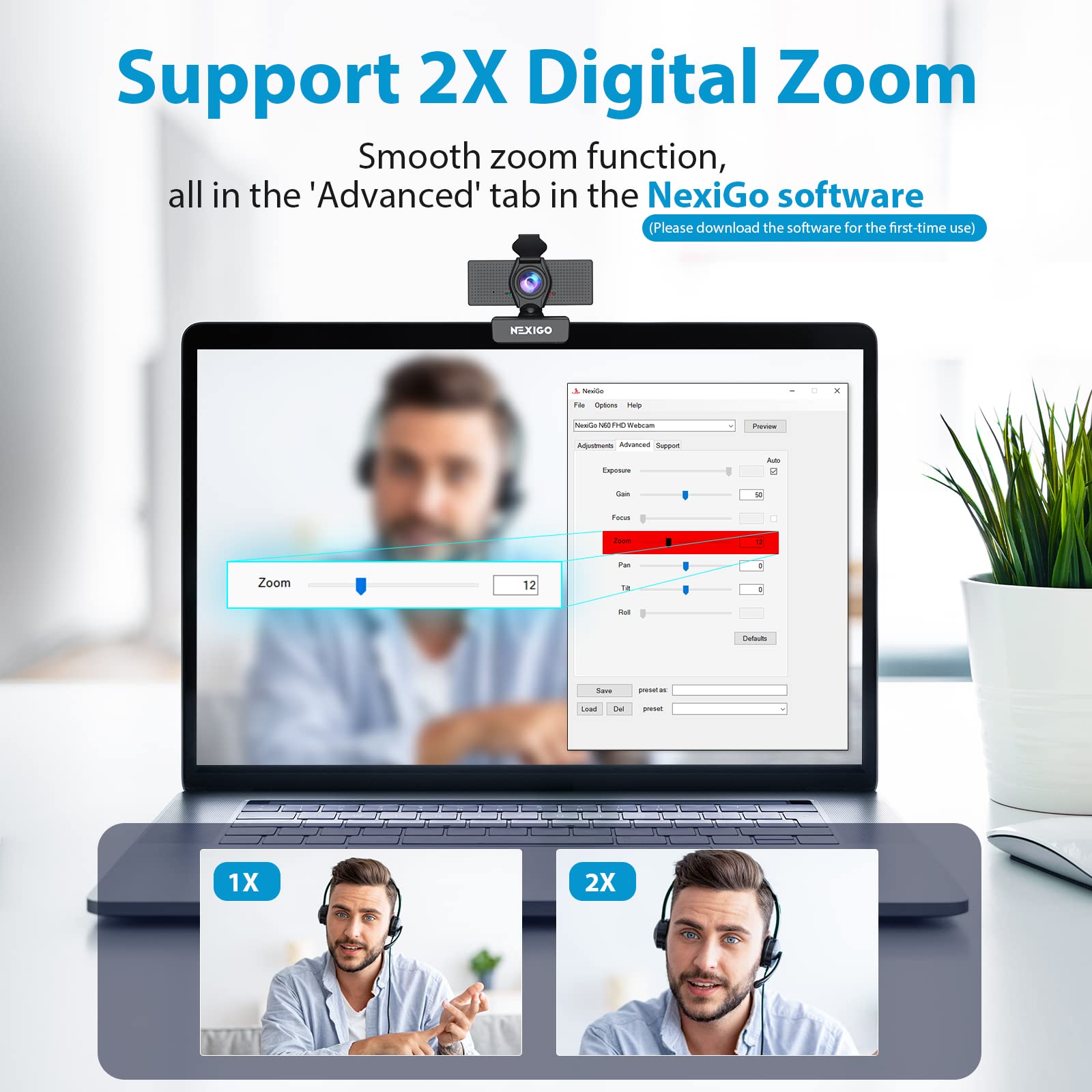NexiGo N60 1080P Webcam with Microphone, Adjustable FOV, Zoom, Software Control & Privacy Cover, USB HD Computer Web Camera, Plug and Play, for Zoom/Skype/Teams, Conferencing and Video Calling