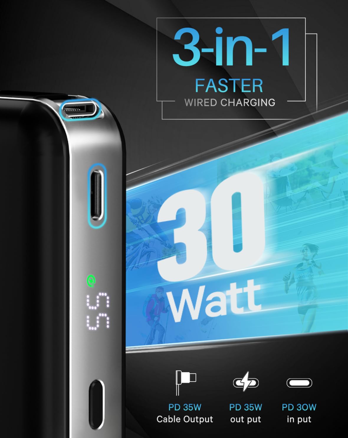 - Qi2 Tech & Fast Charging: Our Qi2 Wireless Charger adopts the latest Qi2 charging technology, support 15W max wireless fast charging for iphone series, 35W max USB-C PD output, Max 30W USB-C input, and 35W fast built-in USB-C cable charging. Save more than half the time compared to power bank without Qi2 fast charging.
