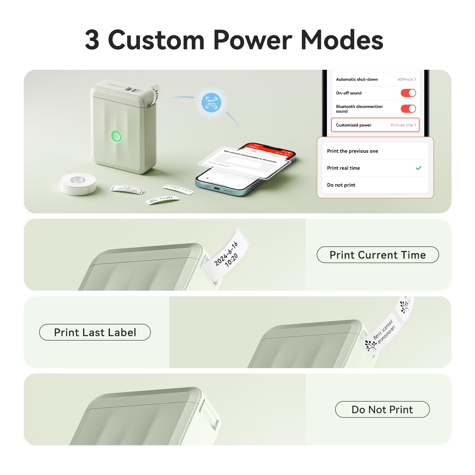 - 【Label Options and Organization】With Intelligent Identification technology, this mini label maker can automatically recognize the label you put in, support a variety size and kind of label paper, such as clear, colorful, cute gift tapes and round labels. The label refills is waterproof and Oil-proof, which can be widely used in Home Kitchen and School. (This label maker is monochrome printout, which only prints black text. We can create color labels buy using color pattern label tapes.)