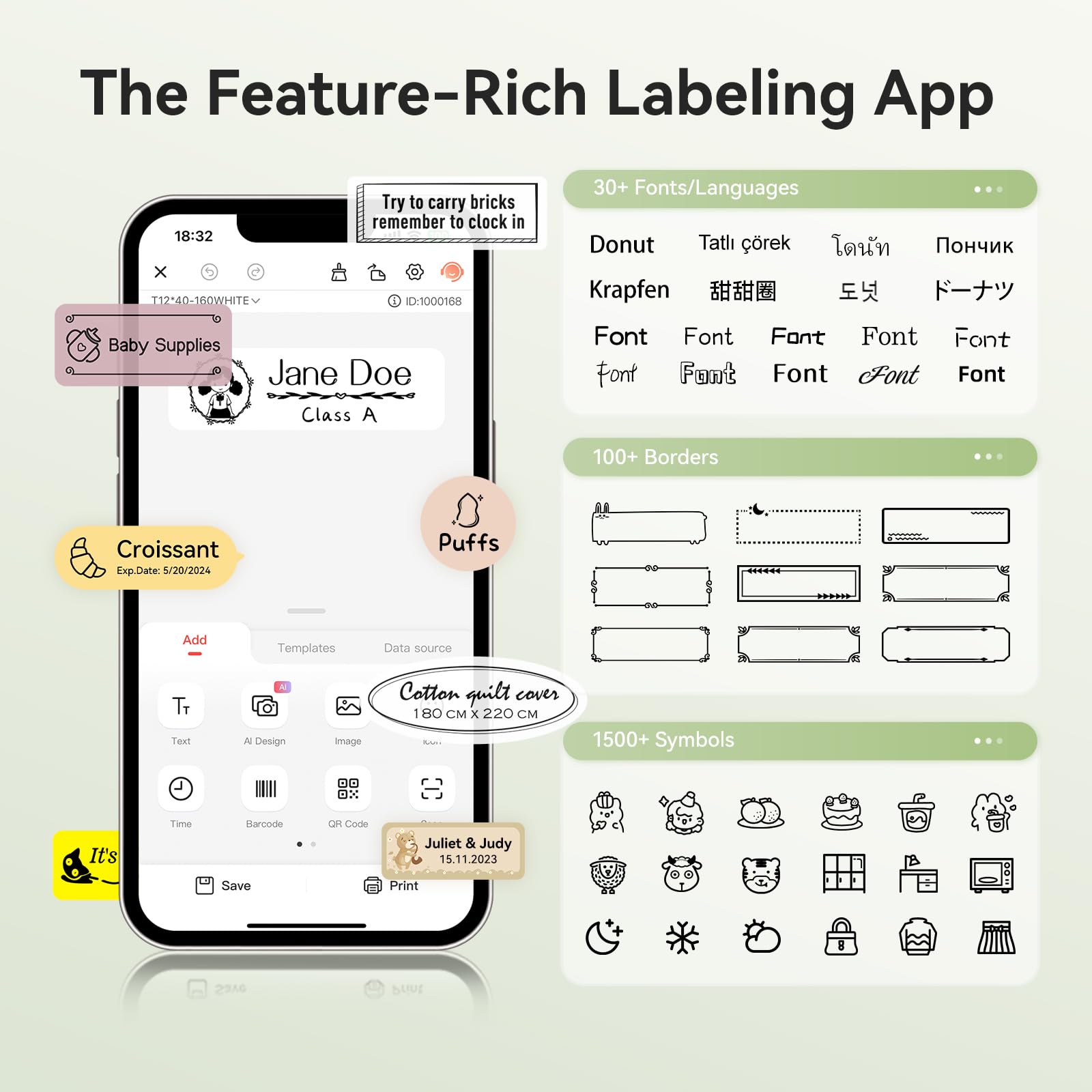 - 【Ideal Gifts】The NIIMBOT D110 Sticker Printer Machine is used widely in organizing home supplies - storage, food date marking, classifying cosmetics items, jar stickers; School name labels, study note and office files classification, cable identification, personal item identification, name tags; Small business - price tags, jewelry tags and more.