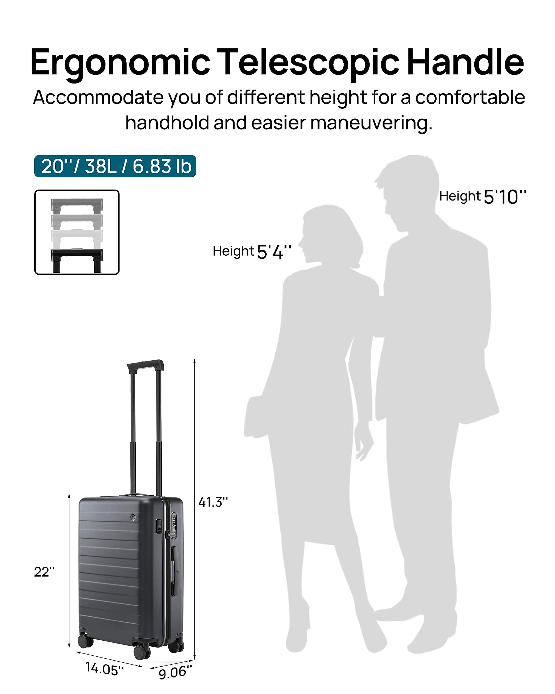 NINETYGO Carry on Luggage 22x14x9 Airline Approved with USB Port, 20 Inch Hardshell Spinner Hardside Suitcase with Wheels, TSA Lock for 3-5 Days Travel Quick Getaway Business, 38L, Gun