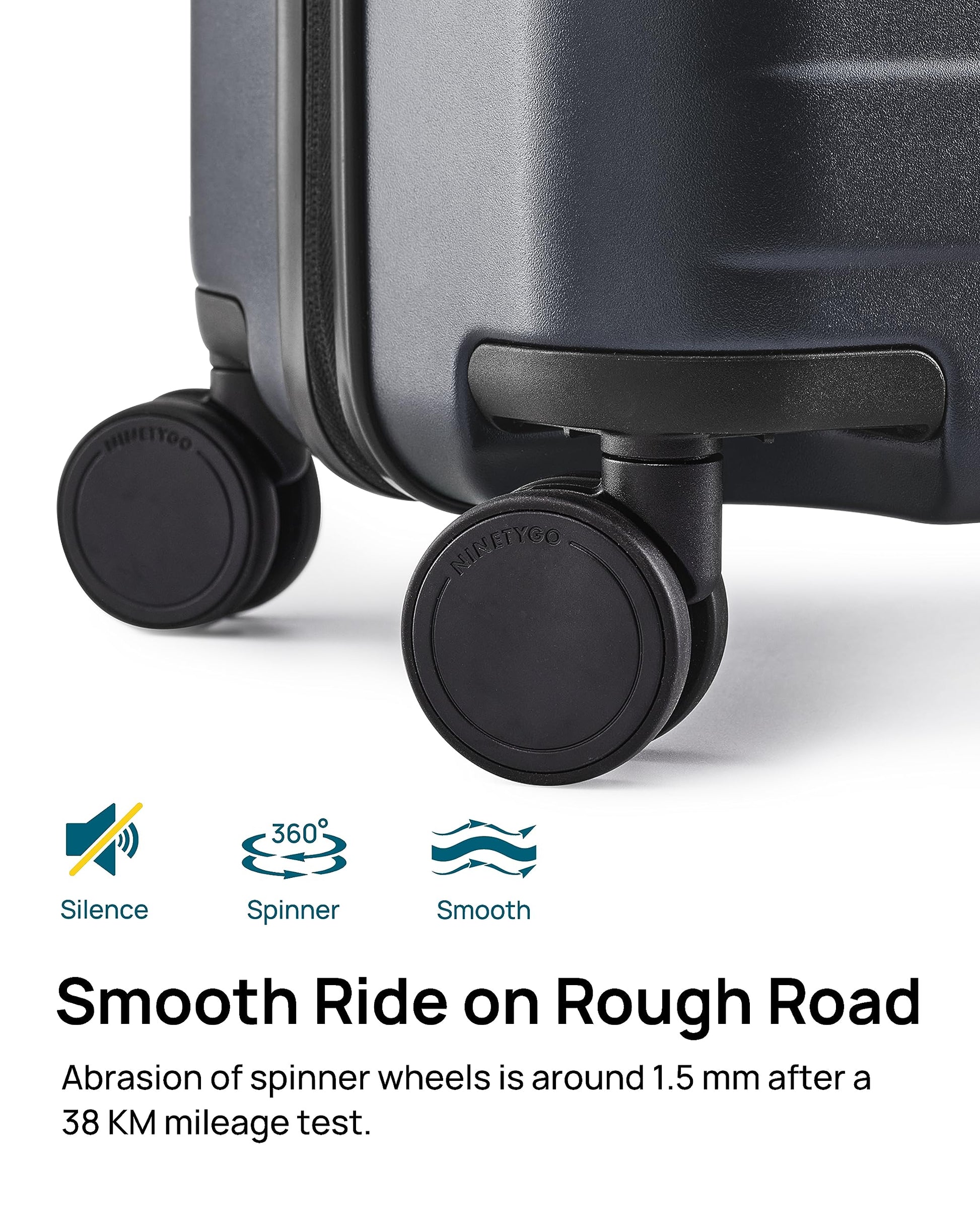 - ใ๐๐ ๐๐ง๐๐ก ๐๐๐ซ๐๐ฌ๐ข๐๐ ๐๐ฉ๐ข๐ง๐ง๐๐ซ ๐๐ฎ๐ ๐ ๐๐ ๐ใThe ultra-strong multi-directional spinner wheels can smoothly move at bumpy surface for 38KM with less than 1.5mm abrasion, supporting 360 degree mobility for free-weight rolling. It is also quite even when you're crossing cobblestone streets or navigating busy airports.