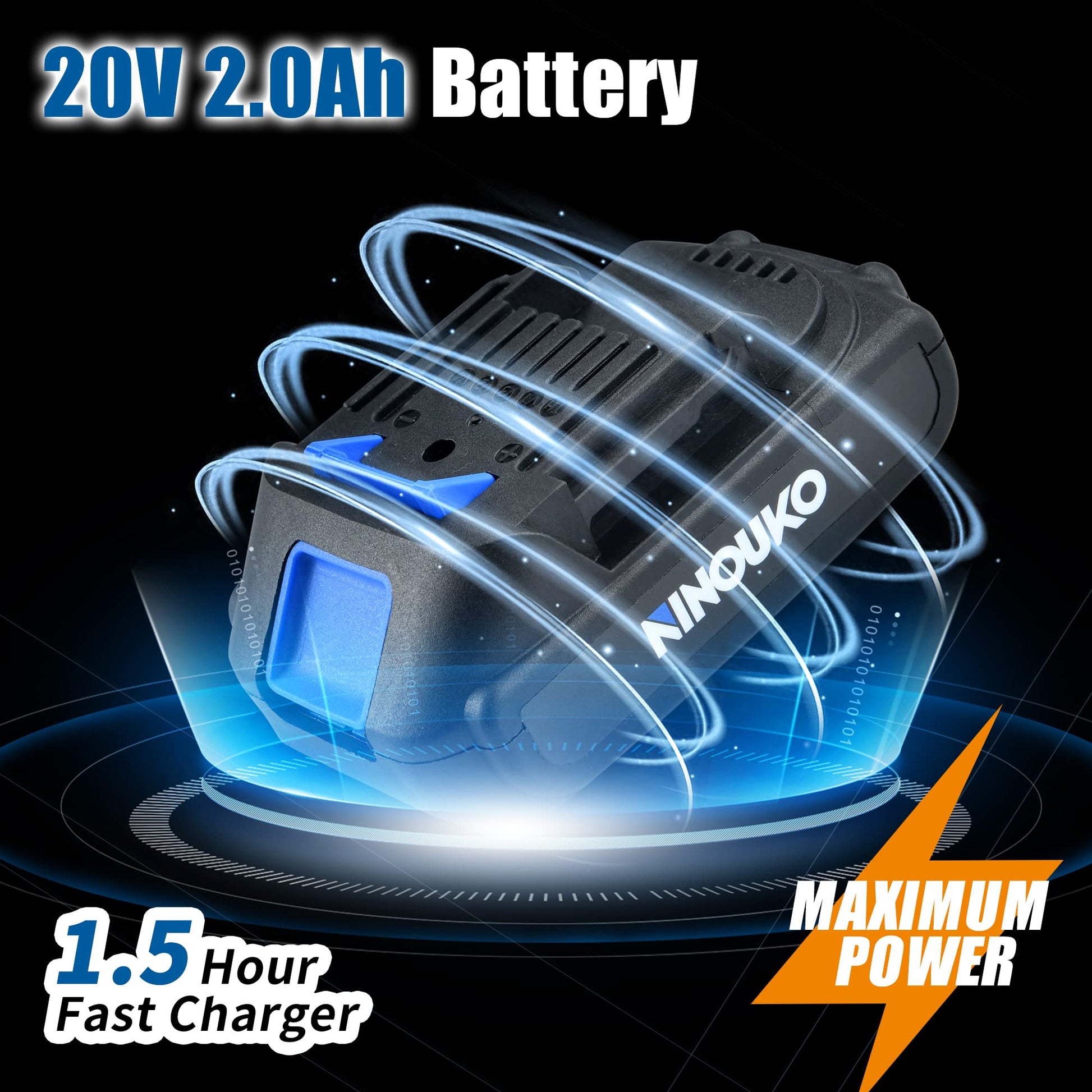 - 【2000mAh Batteries & Fast Charger】20V 2000mAh Lithium-Ion battery is featured with charging and discharging protection, which makes charging extremely safe and battery more durable. Real-time capacity indicator let you better manage your work. 1.5 hour fast charger keeps your drill constantly running.