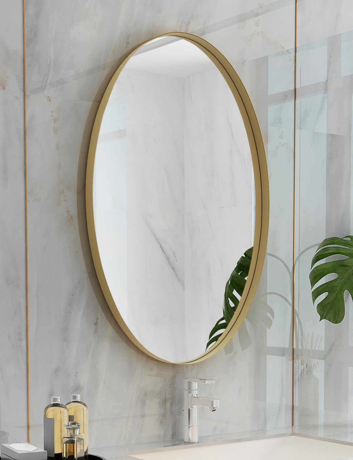 NXHOME Gold Oval Mirror for Bathroom, Matte Metal Frame Modern Circle Mirrors, Wall Mounted Entryway Decorative Farmhouse Vanity Mirror 24×36in
