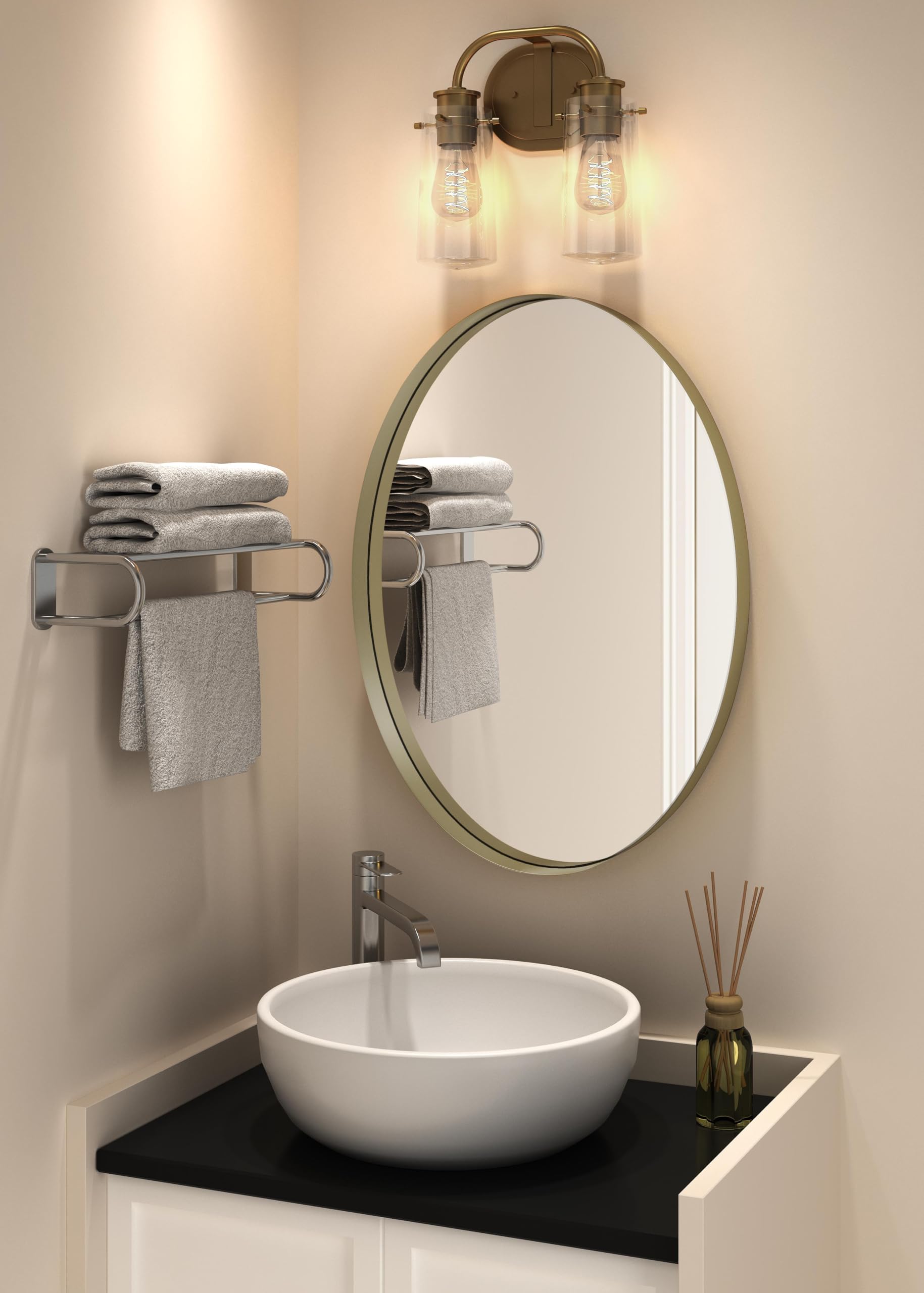 - Elegant Oval Design: Our Black Oval Wall Mirror adds a touch of sophistication and charm to any space. The unique oval shape offers a contemporary twist on the traditional rectangular mirror, creating a visually appealing focal point.