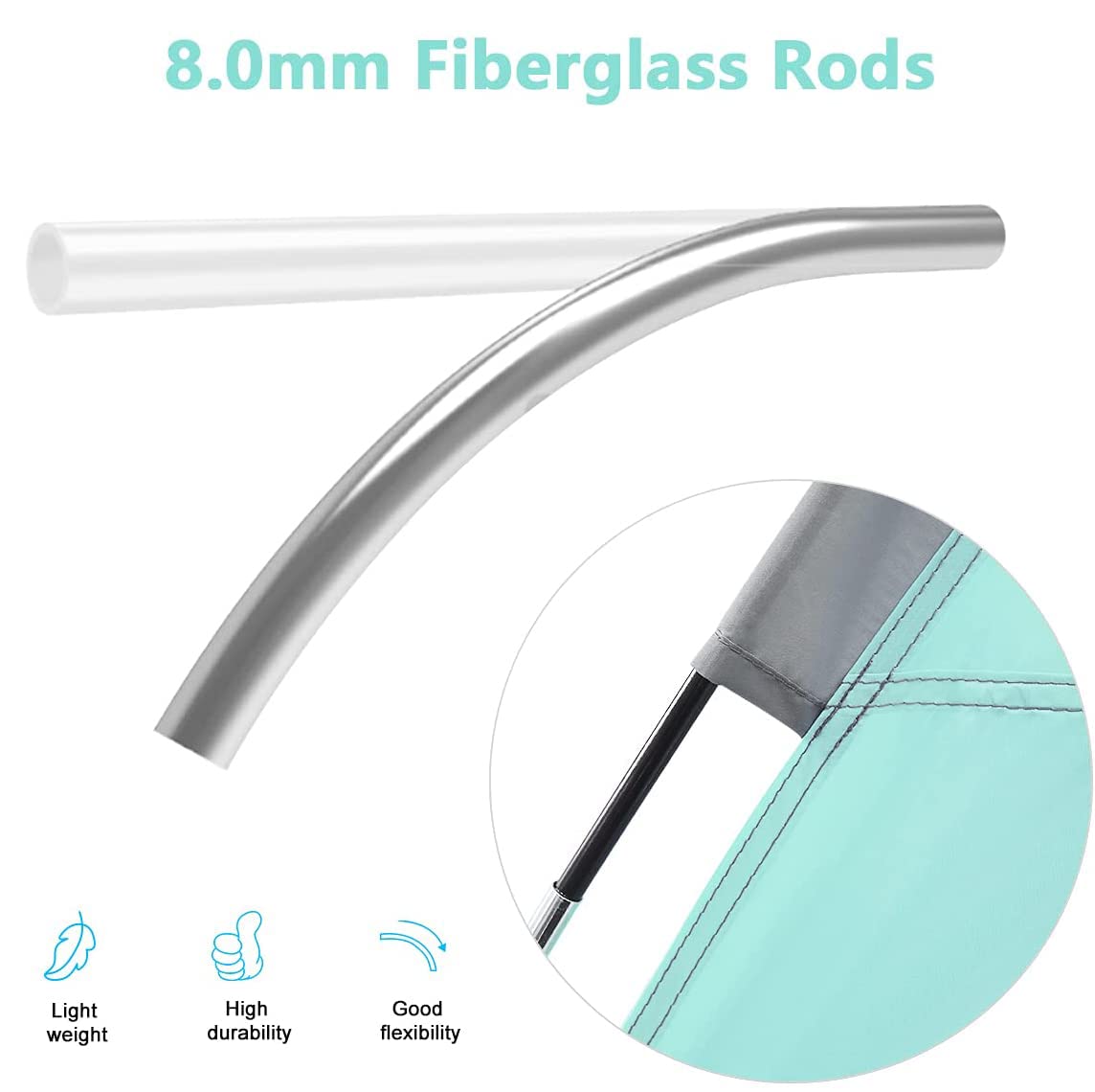 - Good Flexibility & Higher Durability - Fiberglass rods increased from 6.9 millimeter (market standard) to 8.0 millimeter for a more flexible and durable framework when installing in the shade. Dependable and reliable rods are essential, therefore we made this change in order to extend the rod’s lifespan, just to ensure our fiberglass rods can withstand multiple usage even after a long period of time.