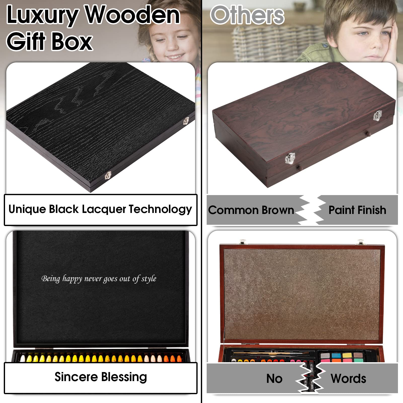 - 【Luxury Wooden Gift Box】This art box is made of unique black lacquer technology and keep the original wood grain, which is different from the ordinary art sets and highlights the sense of luxury. As soon as you open the box, you can unlesh your creativity and enjoy yourself in the fun of painting.