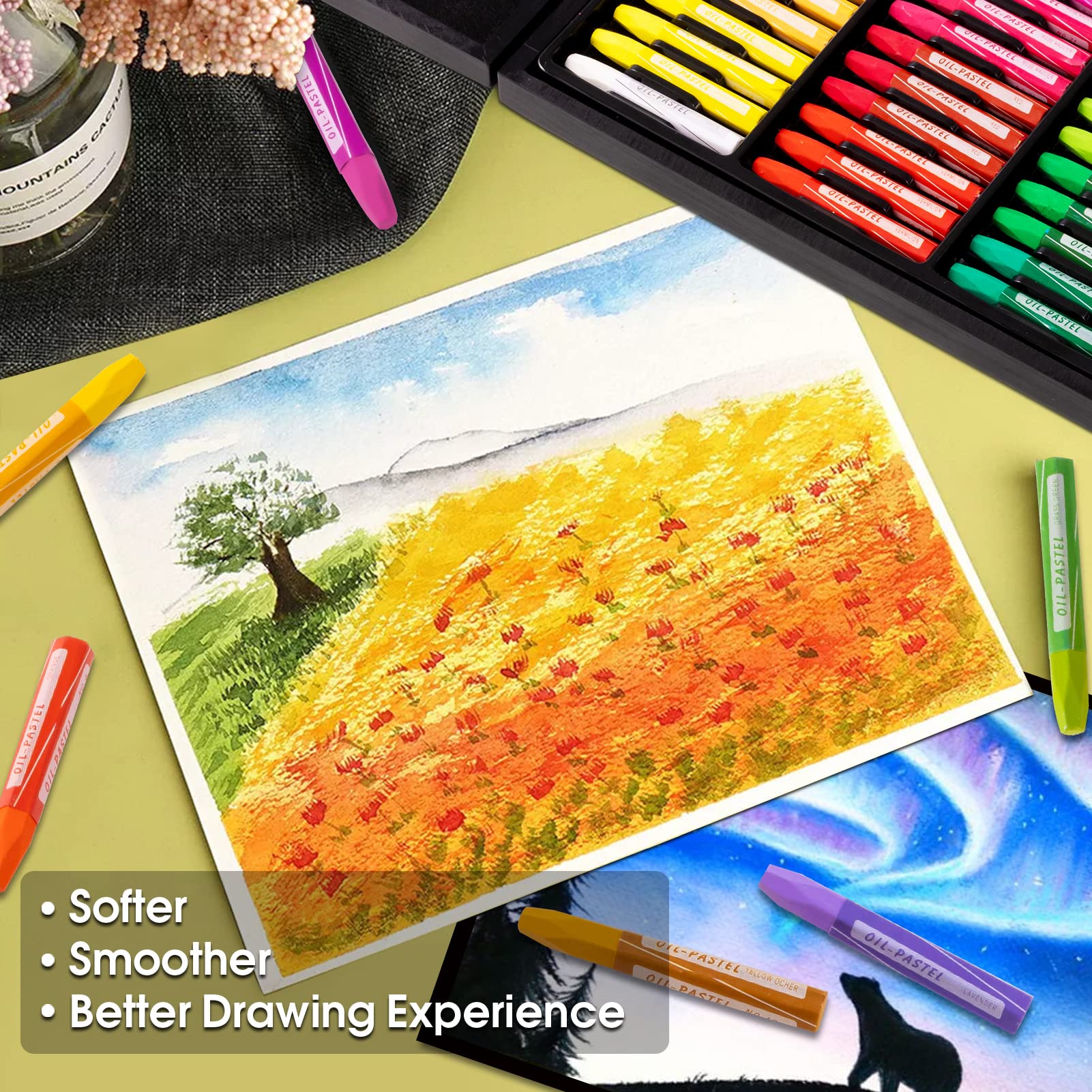 - 【Widely Application】Drawing pastels can be used in many ways to meet versatile painting techniques. For example, color overlaying, mixing, blending, line drawing, sgraffito, stippling and more! As long as you have an idea, can be created.This art set is suitable for kids, students, adults, painting workers, artists to create their artistic works. Whether beginners or professional, who love painting and want to learn oil paint painting, will get the joy of painting from it.