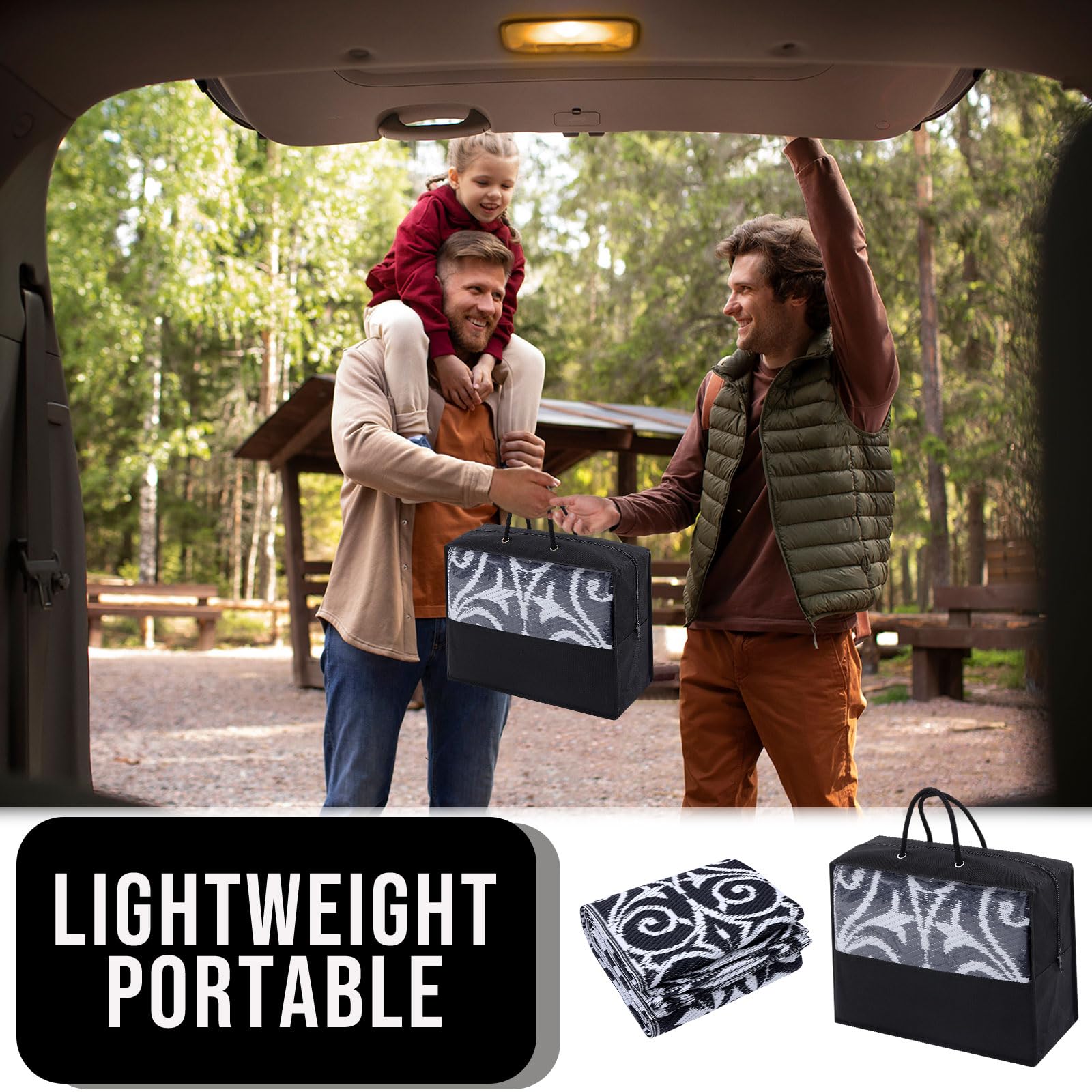 - Lightweight & Portable: Ultra-lightweight and foldable, this outdoor rug is a breeze to carry and store. Take it to picnics, beach outings, or camping trips with ease. Perfect for casual outdoor gatherings, it combines practicality with effortless portability.