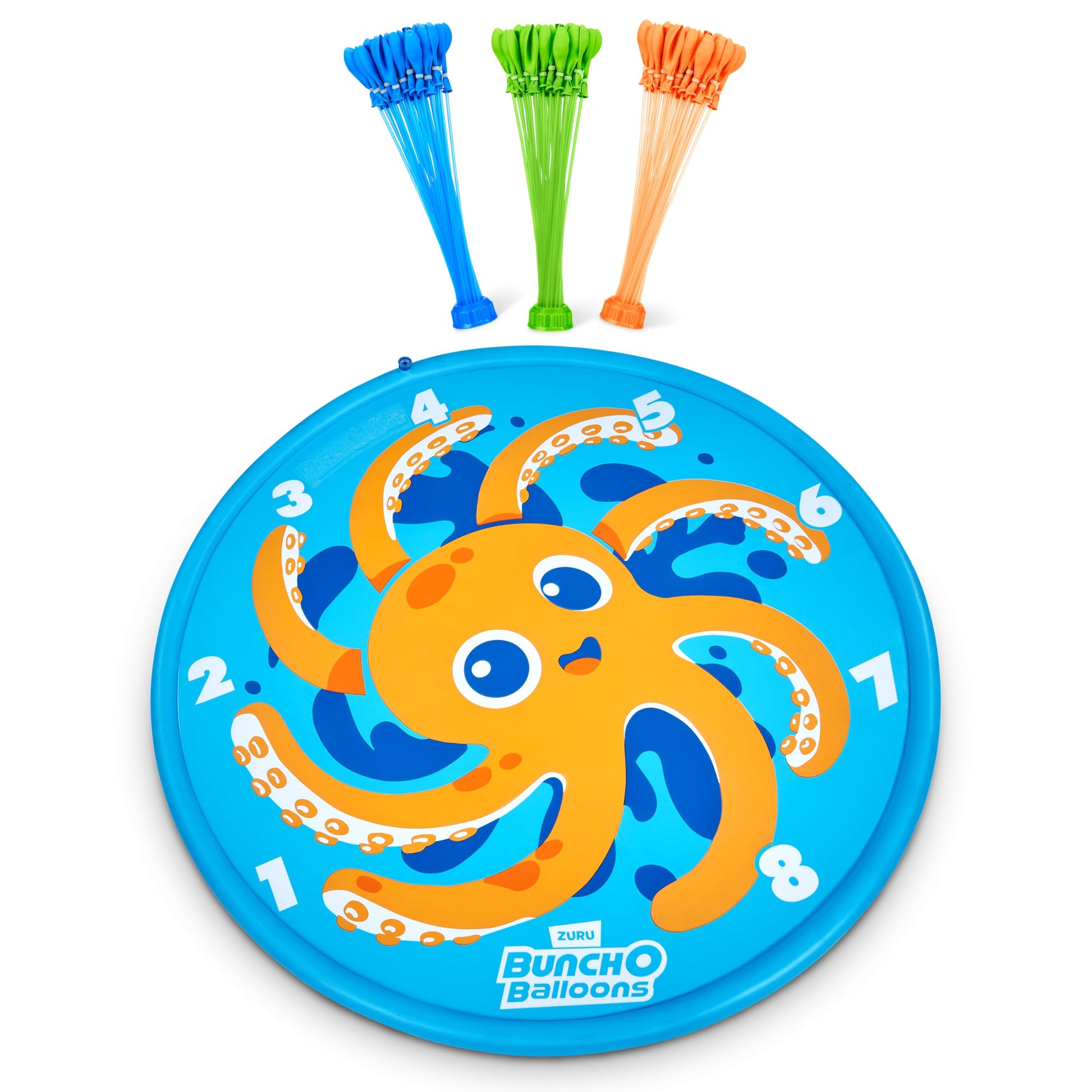 Details: Wipe out the heat with the Bunch O Balloons Octopus Splash Pad. This 5.5ft / 1.6m Splash Pad is the perfect backyard addition for Summer. Simply attach your hose to activate the circular sprinkler system to cool off in the summer heat. Learn and play with this friendly Octopus and his 8 numbered legs. Each Splash Pad comes with 3x Bunch O Balloons Stems (+100 Balloons). Fill and Tie 100 water balloons in less than 60 seconds with these sensational self-tying water balloons! Say goodbye to the stress and mess of filling individual water balloons and say hello to never ending splash out loud fun!