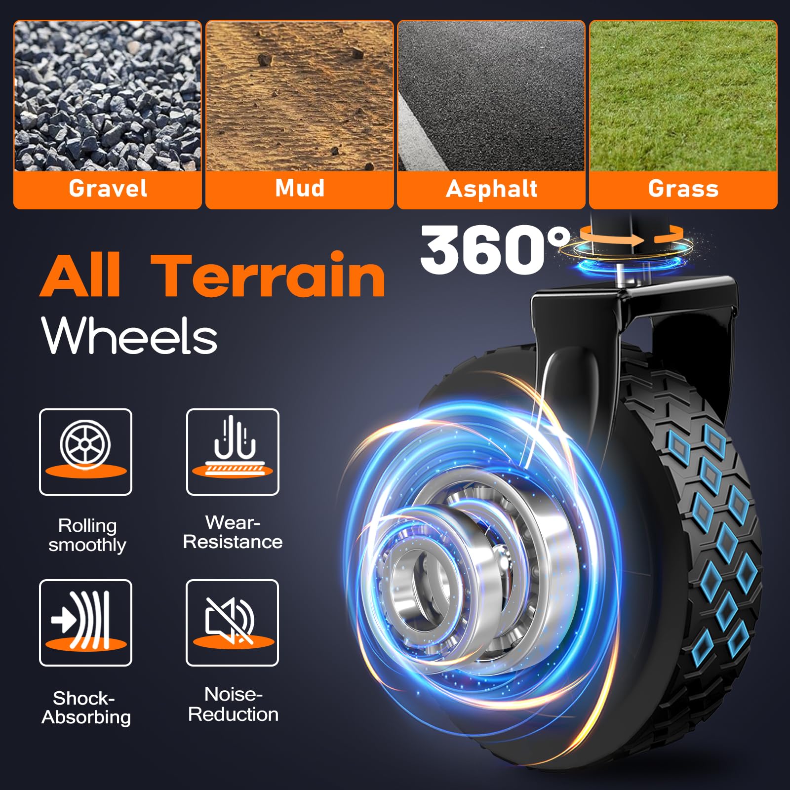 - ใ๐ฏ๐ฒ๐ฌยฐ ๐ฅ๐ผ๐๐ฎ๐๐ถ๐ผ๐ป ๐ฆ๐ถ๐น๐ฒ๐ป๐ ๐จ๐ป๐ถ๐๐ฒ๐ฟ๐๐ฎ๐น ๐๐น๐น-๐ง๐ฒ๐ฟ๐ฟ๐ฎ๐ถ๐ป ๐ช๐ต๐ฒ๐ฒ๐น๐ & ๐๐น๐ฒ๐ ๐ถ๐ฏ๐น๐ฒ ๐๐ฑ๐ท๐๐๐๐ฎ๐ฏ๐น๐ฒ ๐๐ฎ๐ป๐ฑ๐น๐ฒใOur beach wagon is equipped with four removable anti-skid all-terrain wheels, Featuring two 360ยฐ swivel front wheels for effortless steering across different terrains, stands and rolls freely even when folded. Shock-absorption and noise-reduction, ensuring durability and resistance to wear and tear. Humanized adjustable handle, expandable up and down depending on the height, greatly enhancing the flexibility.