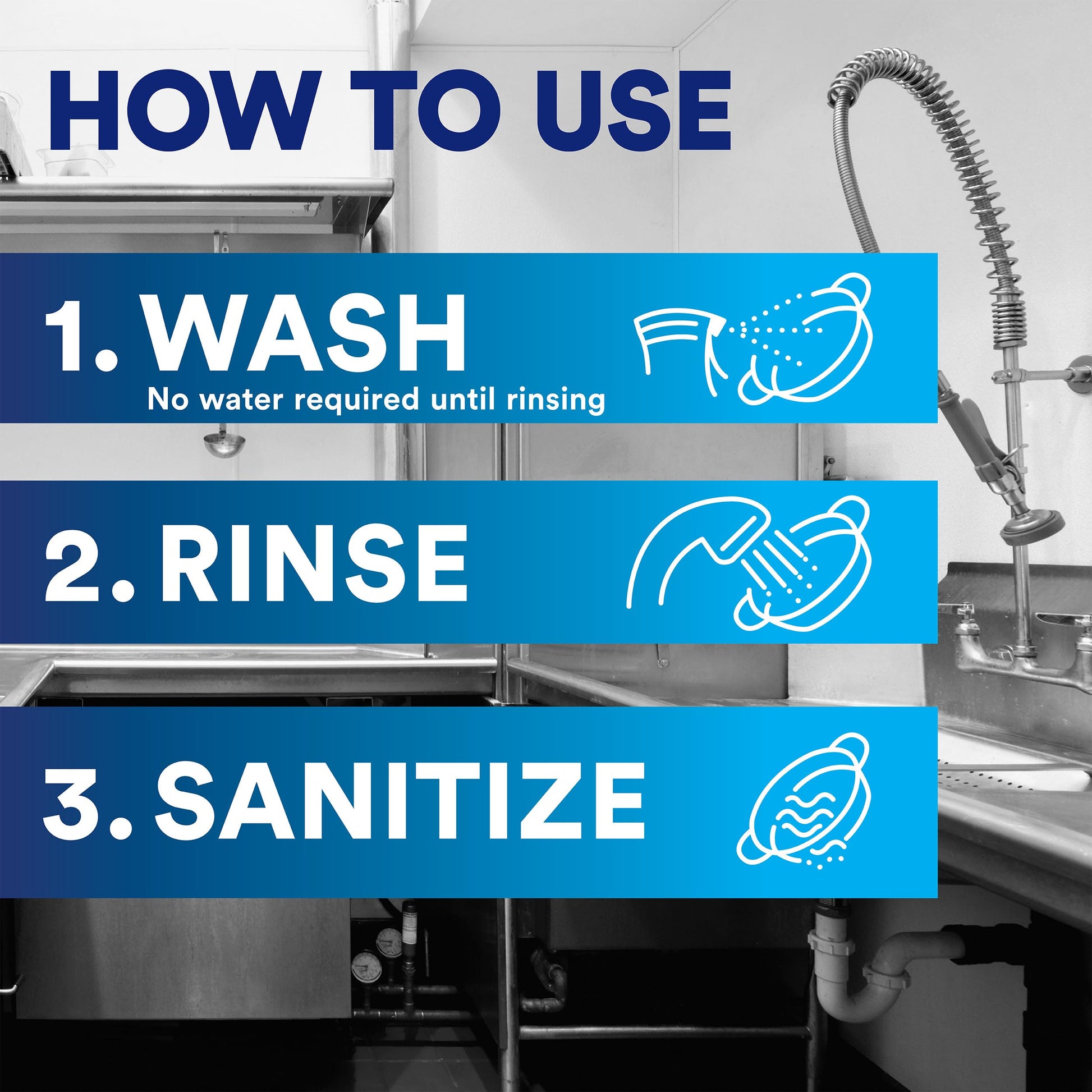 - To Use: Simply Spray Item, Wipe Away Grease, Rinse with Water and Sanitize.