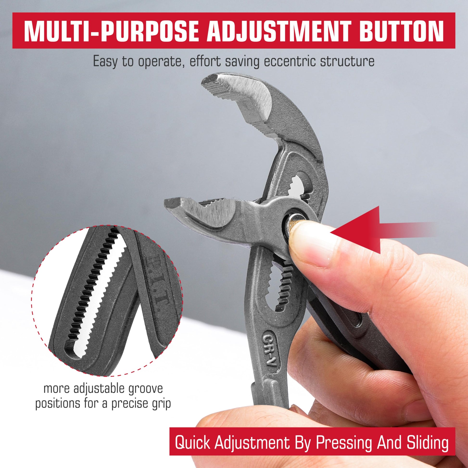 - Fast Adjustment Directly: The adjusting pliers is equipped with a unique jaw adjustment mechanism that enables the user to easily widen or narrow the grip. This makes it suitable for holding different sizes of pipes, fittings, and other round objects