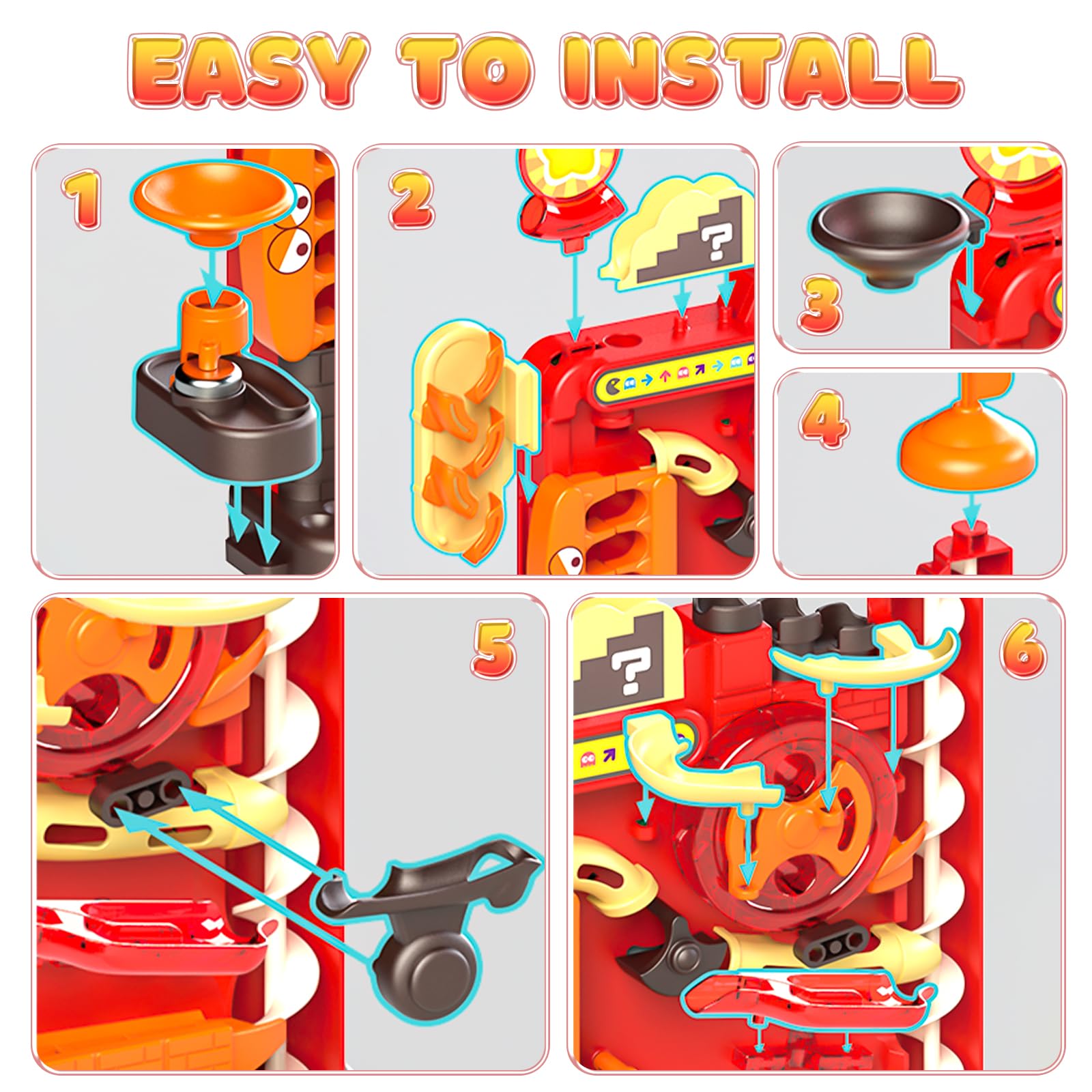 - Safe and Durable Material: Marble runs for kids 8-12 has passed CPSIA & ASTM F963 certification in the US and EN71 & CE certification in the EU. The marble run set made of ABS and 6 steel marbles . Smooth and burr-free edges. This marble run is safe for children and built for lasting fun and durability
