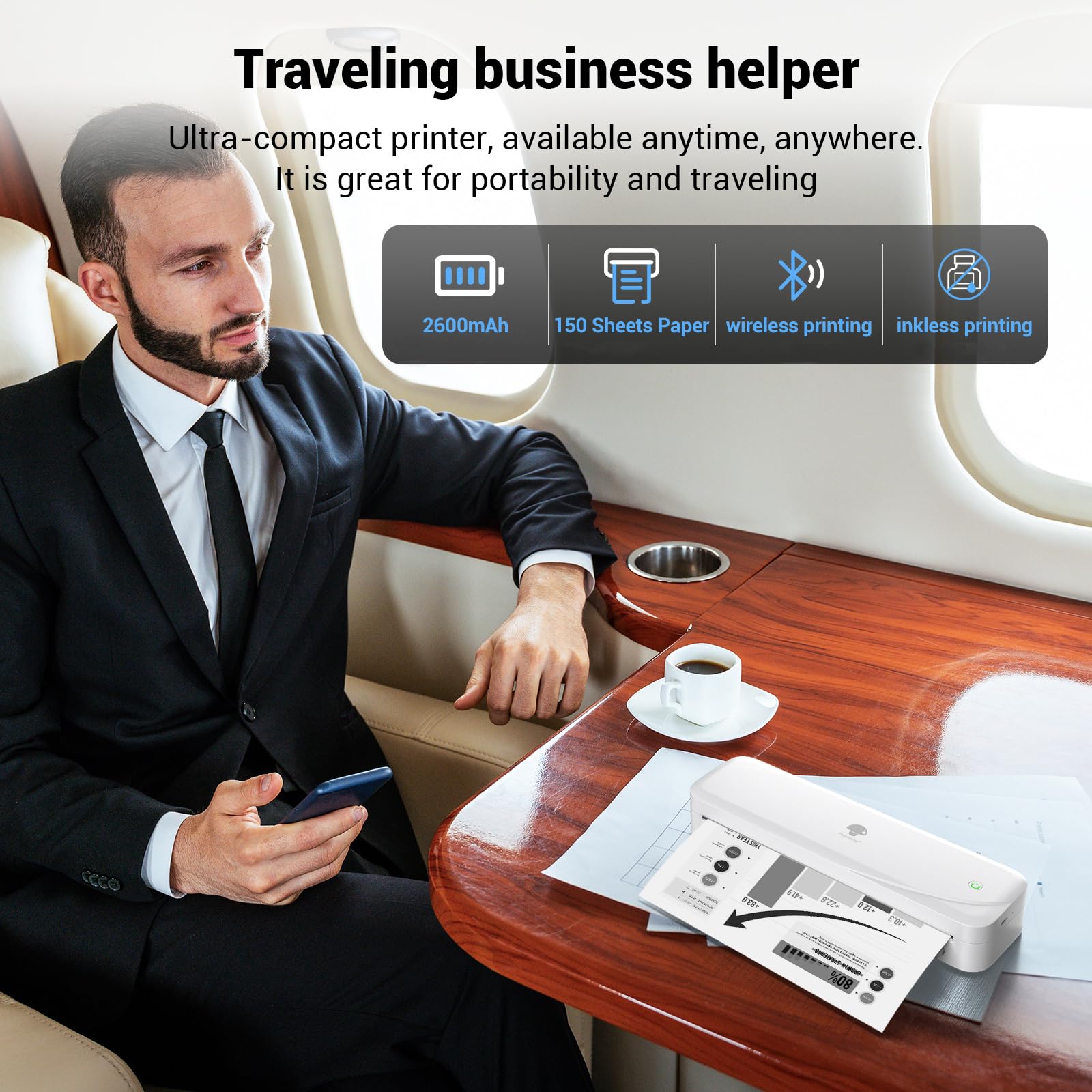 - Portable and Compact Printer - Phomemo Portable printer Weighing only 750g, which can be easily put into your bag to help you work anywhere. Additionally, the mini printer built-in upgrade 2600mAh battery ensures uninterrupted use throughout the day. You can Print Anytime and Anywhere. Phomemo Portable printers wireless for travels, car and outdoor. M833 Mobile printer is well suited for office worker, students, children, business traveler, truck driver, mobile notary, teachers, etc