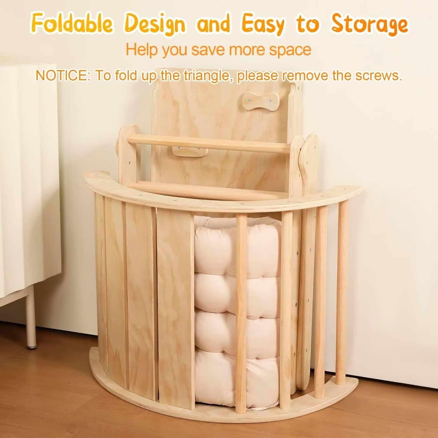 - INCLUDES CUSHION: Our climbing set has a soft, comfortable cushion that enhances the play experience. The cushion provides added comfort and safety for your little one. It also helps to bolster the overall safety of the foldable climbing triangle that has been engineered for the safety of your little one