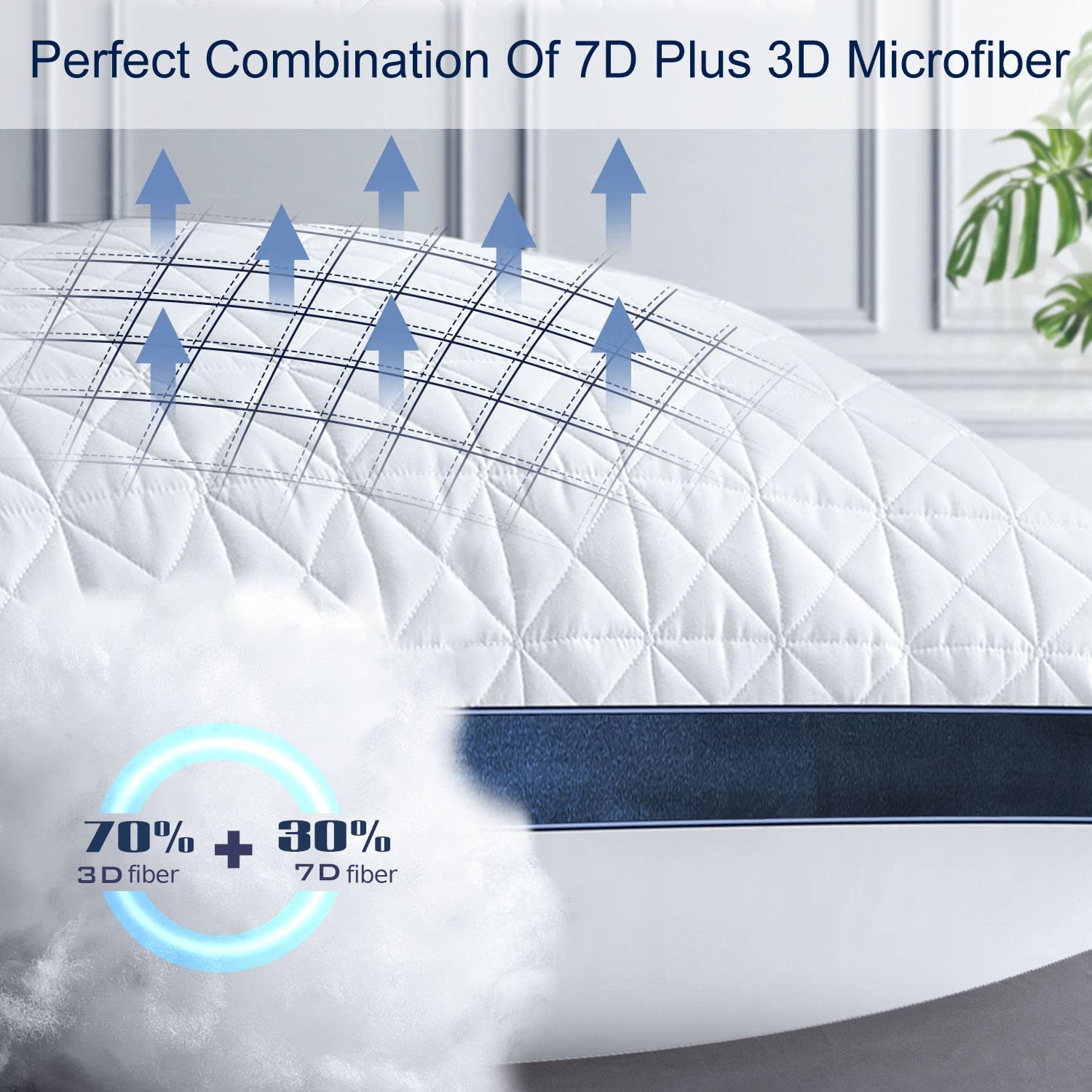 - SOFT & SUPPORTIVE QUEEN PILLOWS: Filling is the core of pillow, our queen pillows filled with selected squishy down alternative microfiber, 3D microfiber provide softness, 7D microfiber guarantees sufficient support and rebound, which lead you a incredible comfortable feeling. You won’t feel neck or should pain for its’ too soft or too firm, say bye to tossing and turning all night