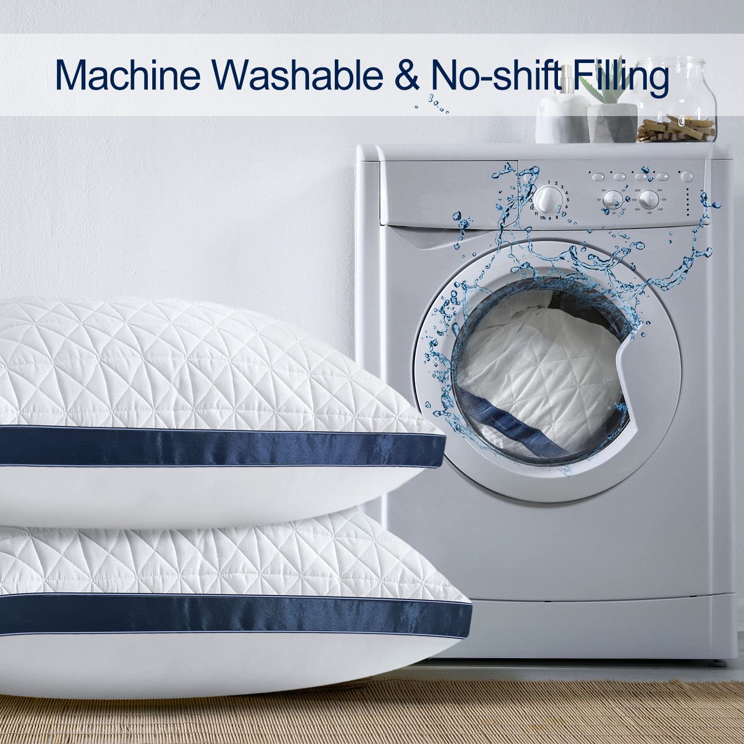 - EASY HOME CARE: Our pillows are machine washable with tumble dry low, no-shift filling after washing, no clumping and always like new. Queen size measures 19 * 28 inch, fit for standard pillow case. It come with vacuum-sealed for shipping, once opened it will start to fluff up, please leave 48 - 72 hours for the pillows to get to full thickness before using them. Fluff the pillow regularly will retain its shape for long time use