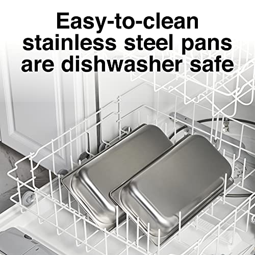 - EASY TO CLEAN: The stainless steel pans that come with the electric warming tray are dishwasher safe, and the lids can be easily wiped clean or rinsed clean in the sink.