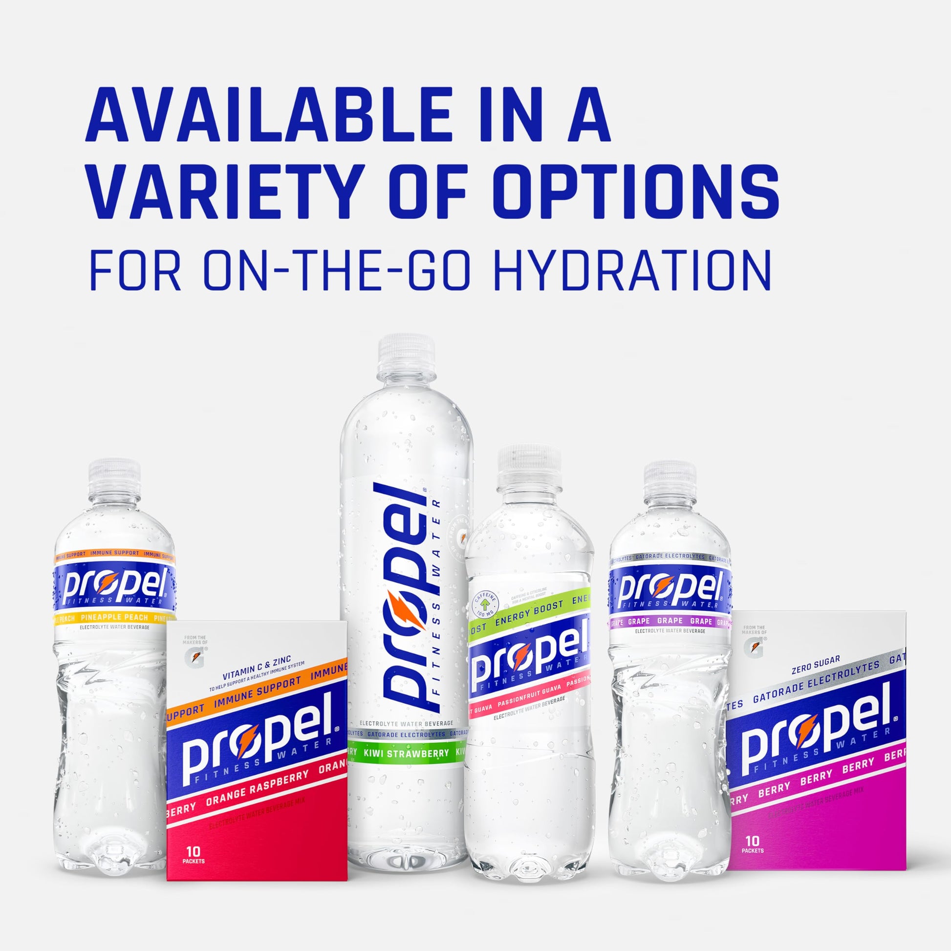 Details: The wide choice of Propel's great flavored fitness waters have Gatorade Electrolytes so you can hydrate, replenish, and enjoy your best workout with zero sugar, as well as vitamins B3, B5, B6 and antioxidant vitamins C and E. Created by the makers of Gatorade, Propel is the only zero calorie, zero sugar electrolyte water beverage among national enhanced water brands with enough electrolytes to replace what is lost in sweat.