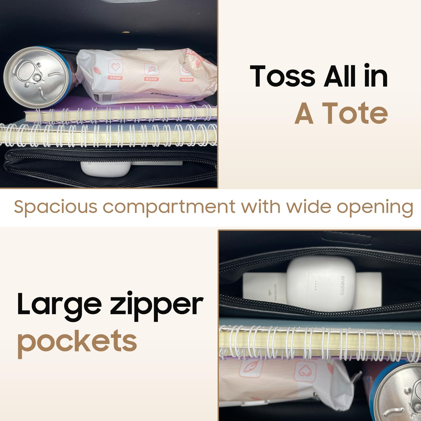 - Spacious & Organized: Generous 13"L x 12"H interior fits daily essentials like a tablet, wallet, makeup pouch, and more. Includes a zippered inner pocket and open slots for smart organization