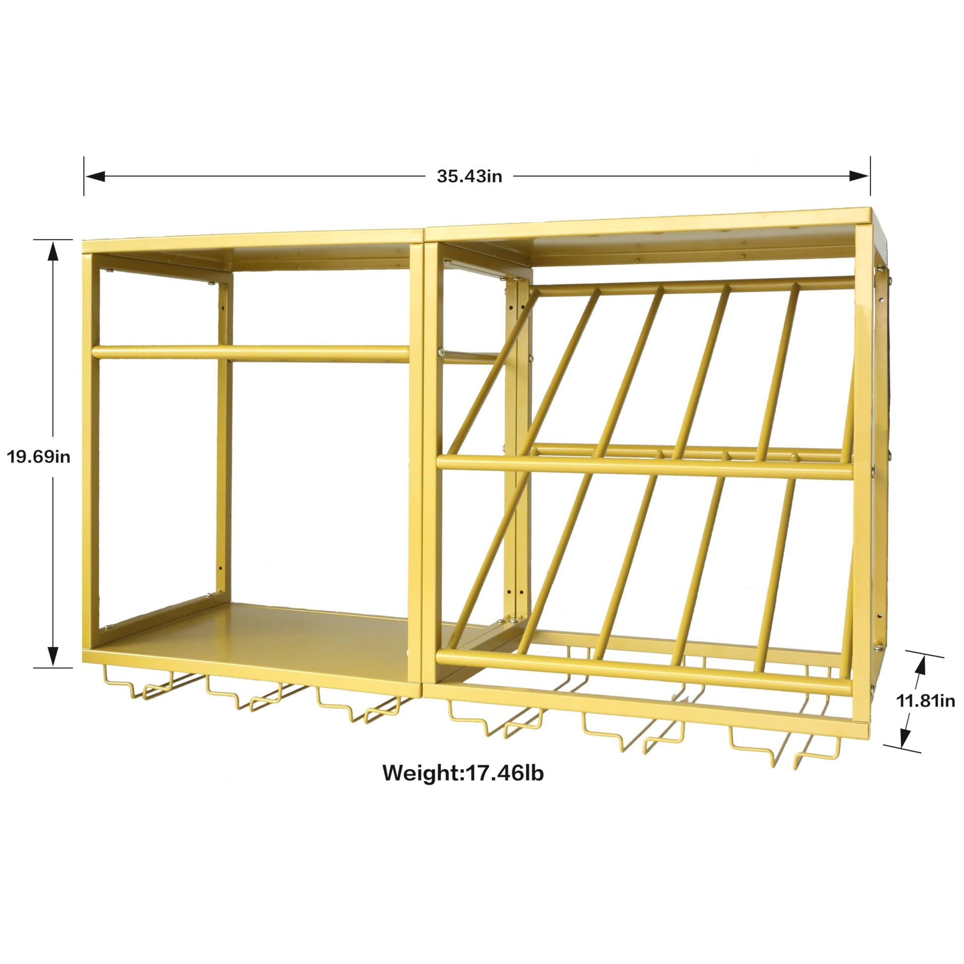 - 【Stylish Colors and Perfect Size】:Available in two elegant colors—black and gold—this wine glass storage rack can seamlessly match your home decor and color scheme. The overall dimensions are approximately 35 inches wide, 12 inches deep, and 20 inches high, making it both functional and stylish