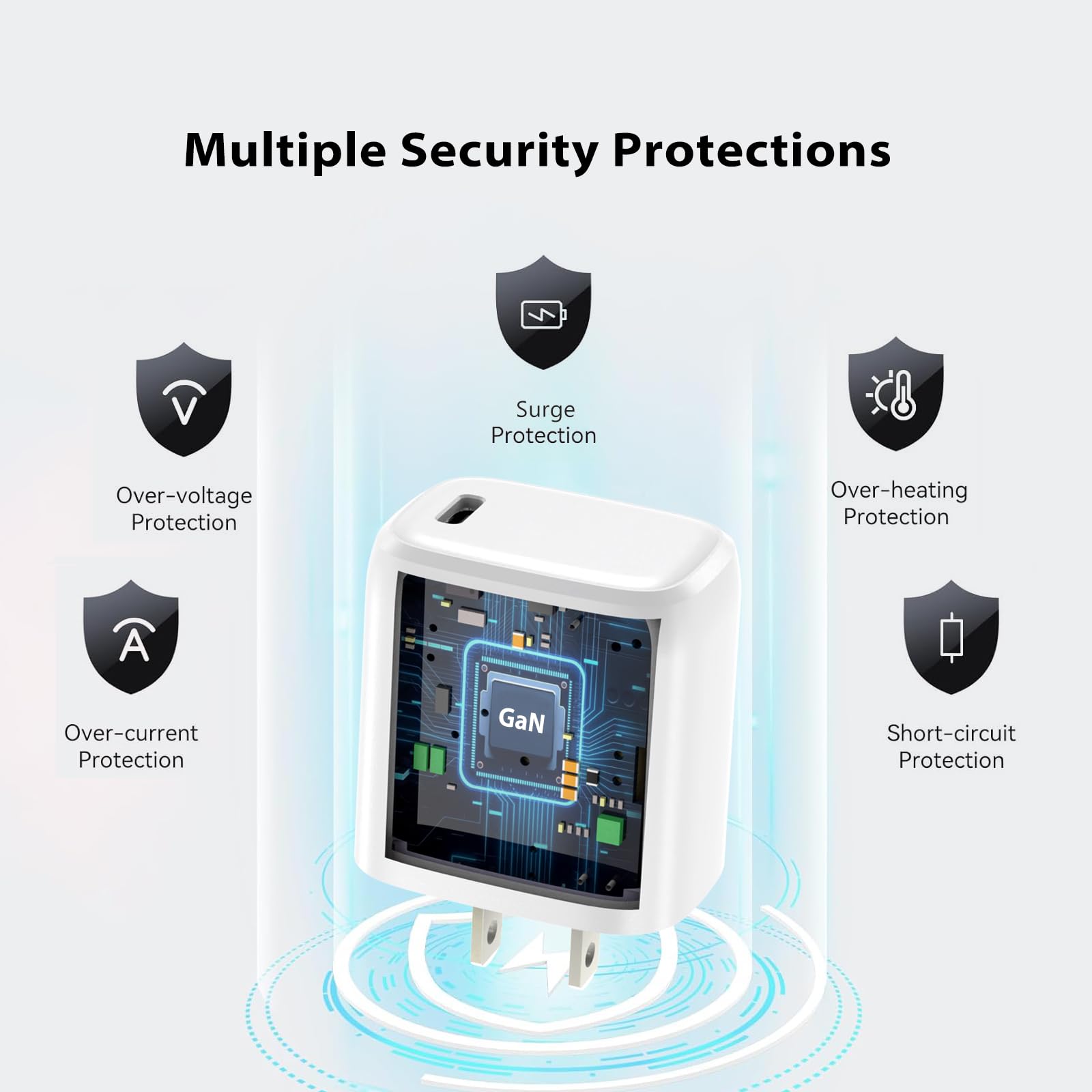 - Multiple Security Protections: The fast charger usb c has multiple protection systems built in: Surge Protection / Overvoltage / Overcharging / Overheating Protection, etc. Qackenm USB C charger block adopts newly upgraded fast charging technology to charge your devices quickly, safely, and stably.